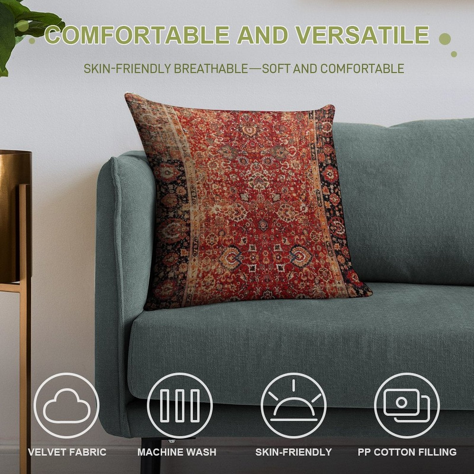 17th Century Afghanistan Rug Print Soft Fade-Resistant Throw Pillow