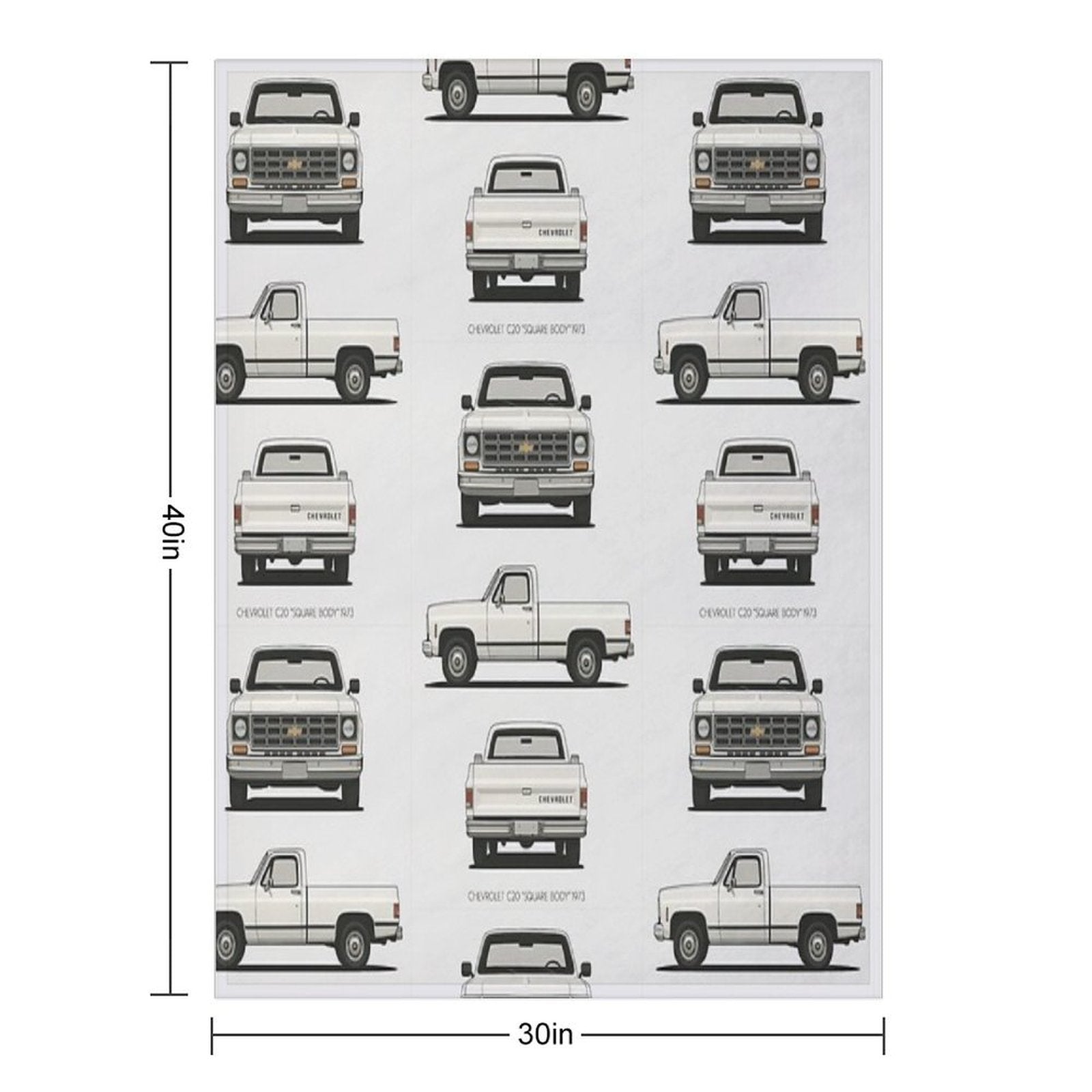 1973 C20 Square Body – Classic Chevy Pickup Triple-View Blanket Size Chart: