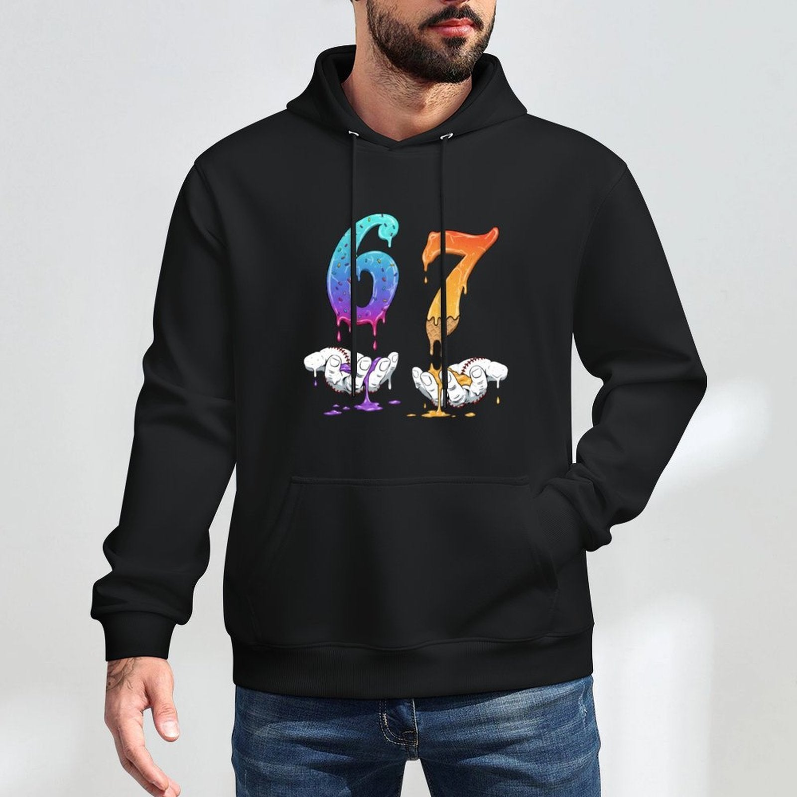 67 Meme Funny Baseball Kids Girls Humor Number 6 7 Machine Washable Hoodie
