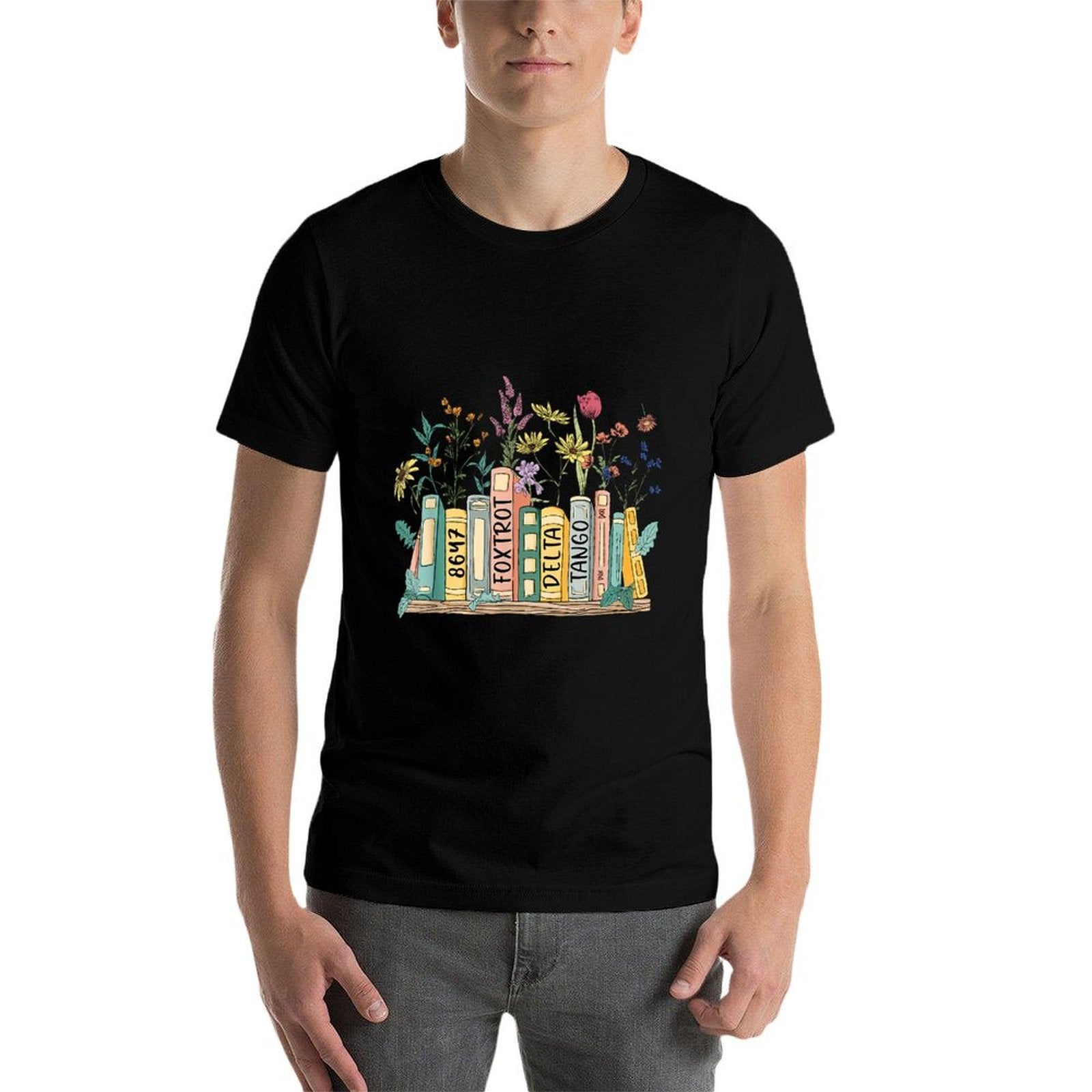 - Avoid bleach to preserve the 8647 Foxtrots Deltas Tangos Book Flower T-shirt’s bold graphics and cotton integrity.