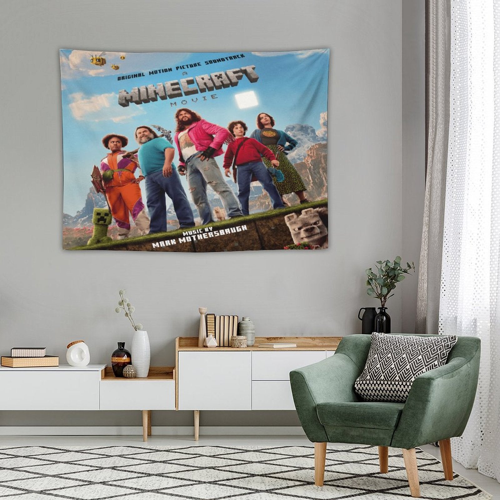 💓【MULTI-FUNCTION】 Used "A Minecraft Movie (Original Motion Picture Soundtrack) Tapestry" to decorate your bedroom, college dorm, room, living room, kitchen wall, can be used as tapestry or wall hanging, bedspread, tablecloth, dormitory decoration, beach shawl, tablecloth, etc.