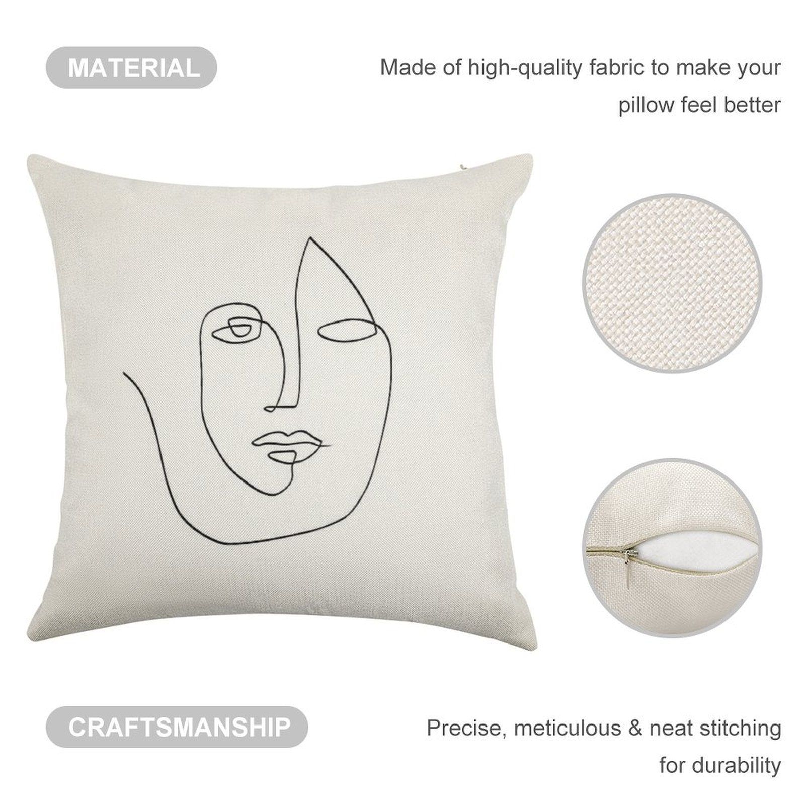 - Double-Stitched Edges: Precision stitching prevents fraying, stretching, and pilling, ensuring your Abstract Face - One Line Art Linen Throw Pillow Cover stays pristine through countless uses.
