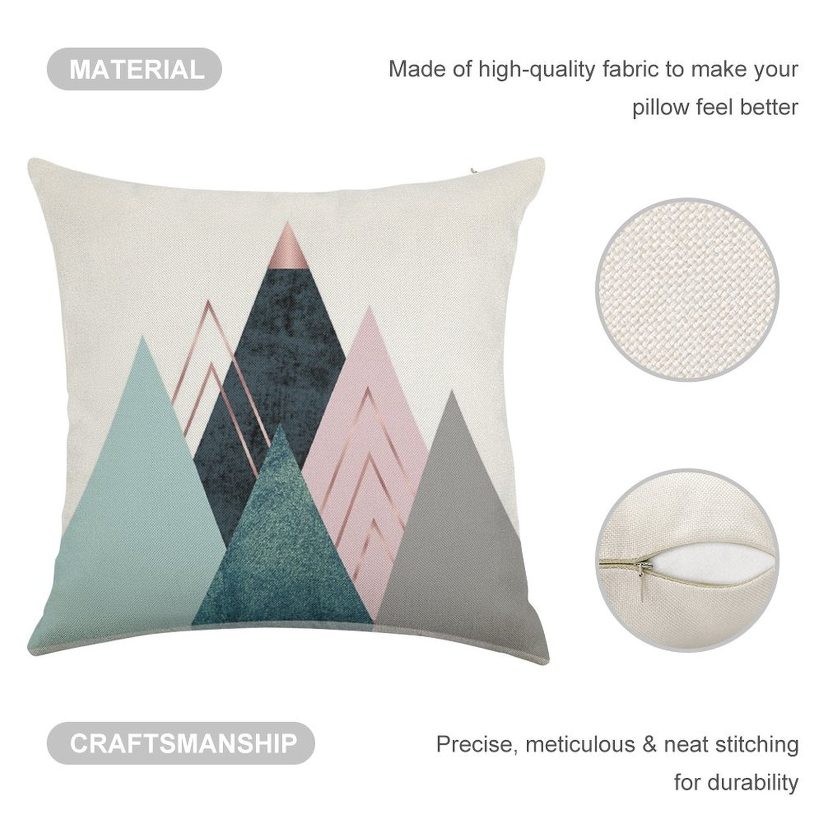 - Double-Stitched Edges: Precision stitching prevents fraying, stretching, and pilling, ensuring your Abstract Minimalist Mountain - Pink, Teal And Blue Linen Throw Pillow Cover stays pristine through countless uses.