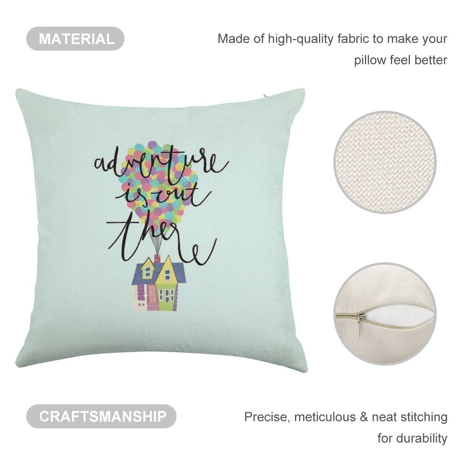 - Machine or hand washable (max 45°C). Avoid bleach and prolonged soaking to preserve the vibrant texture of your Adventure Is Out There Luxury Pillow Cover.
