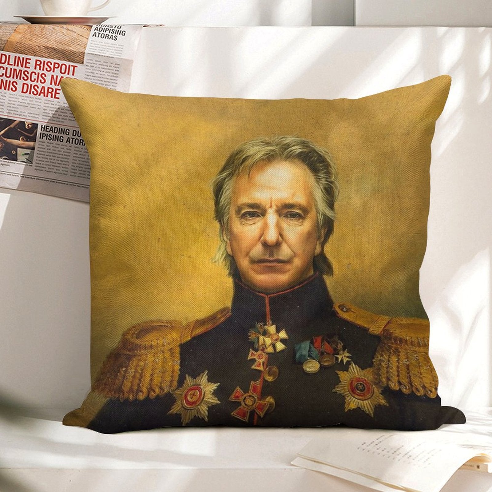- Machine or hand washable (max 45°C). Avoid bleach and prolonged soaking to preserve the vibrant texture of your Alan Rickman - Replaceface Luxury Pillow Cover.