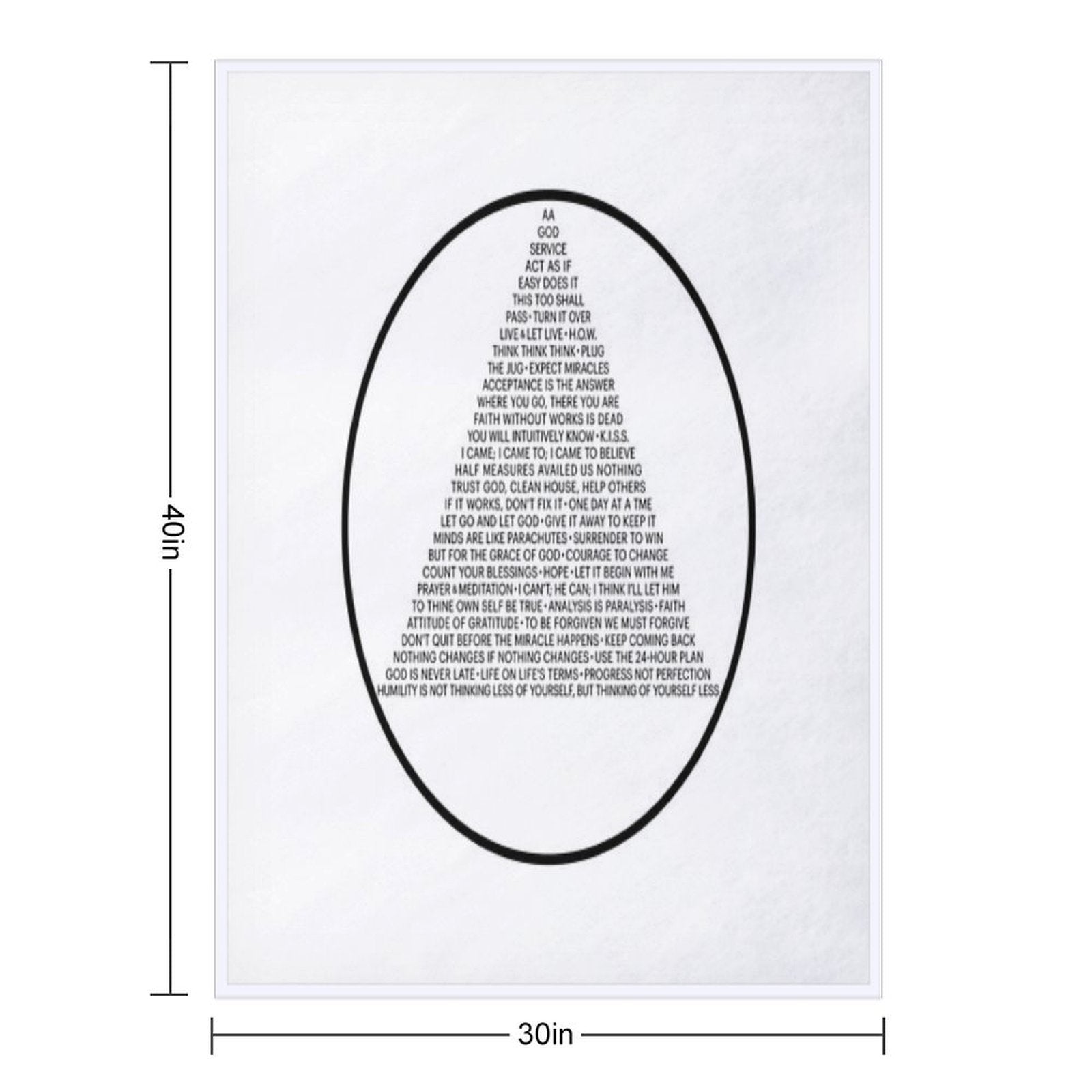 Alcoholics Anonymous Symbol in Slogans (A.A.) Blanket Size Chart:
