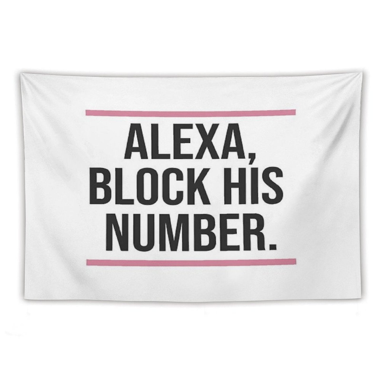 BionZax's Alexa, Block His Number Print Tapestry for Bedroom, College Dorm. Alexa, Block His Number Print Tapestry to decorate your bedroom, college dorm, living room, or kitchen wall, it is the best gift for funny, meme, aesthetic, trendy, simple, fashion, music, abstract, fantasy, modern tapestry for girls, men, boys, teen, women, kids.