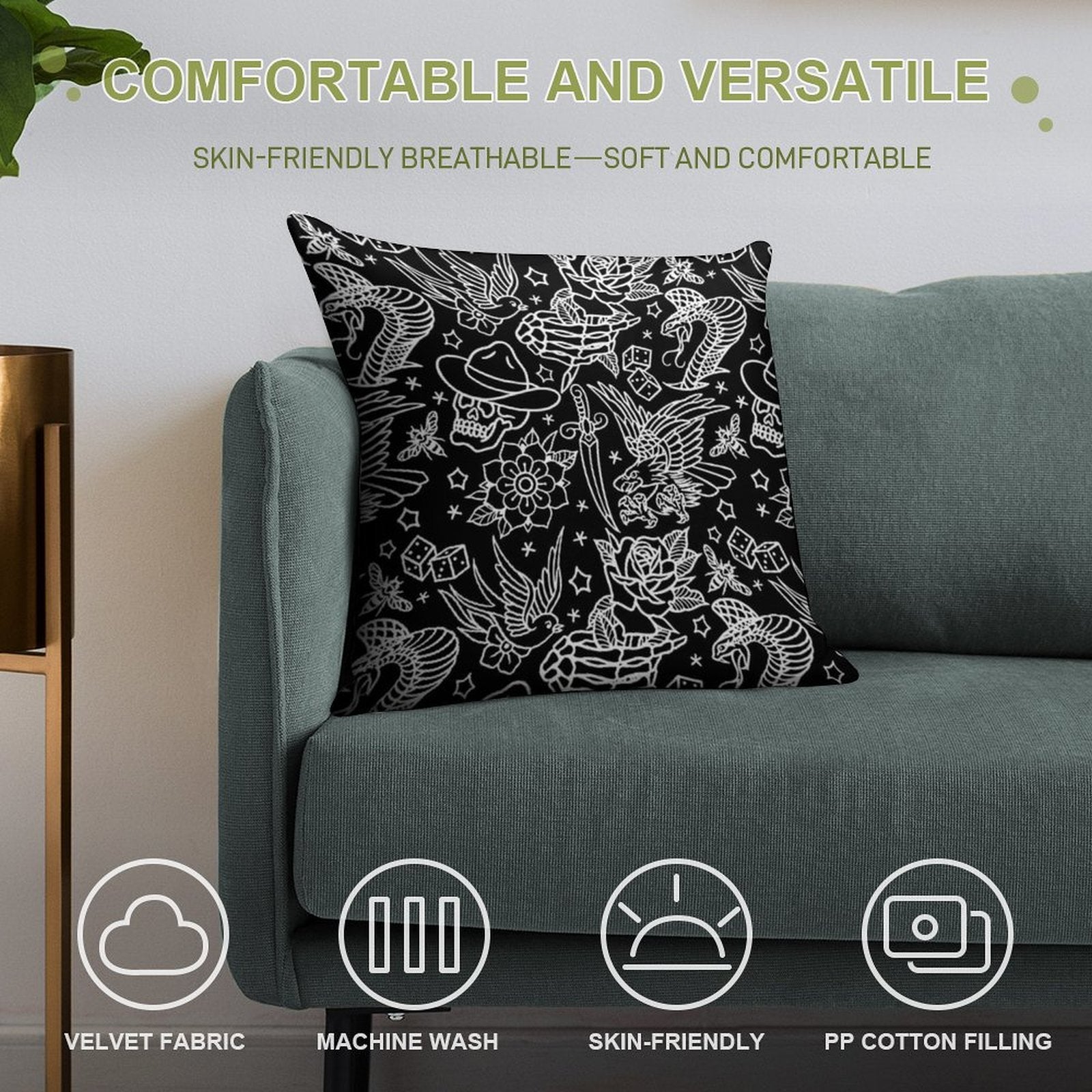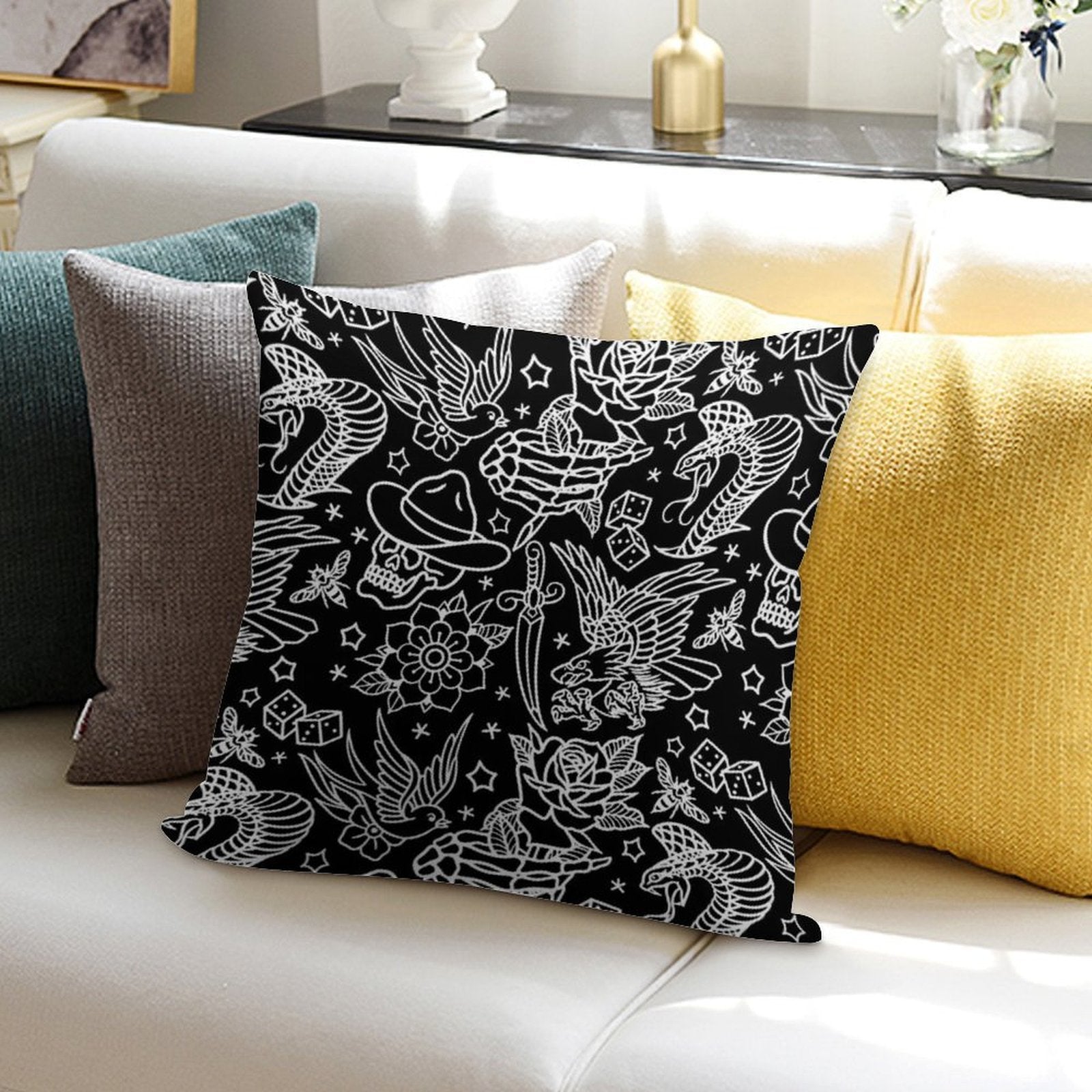 American Traditional Tattoo Flash Print Soft Reinforced Edging Throw Pillow