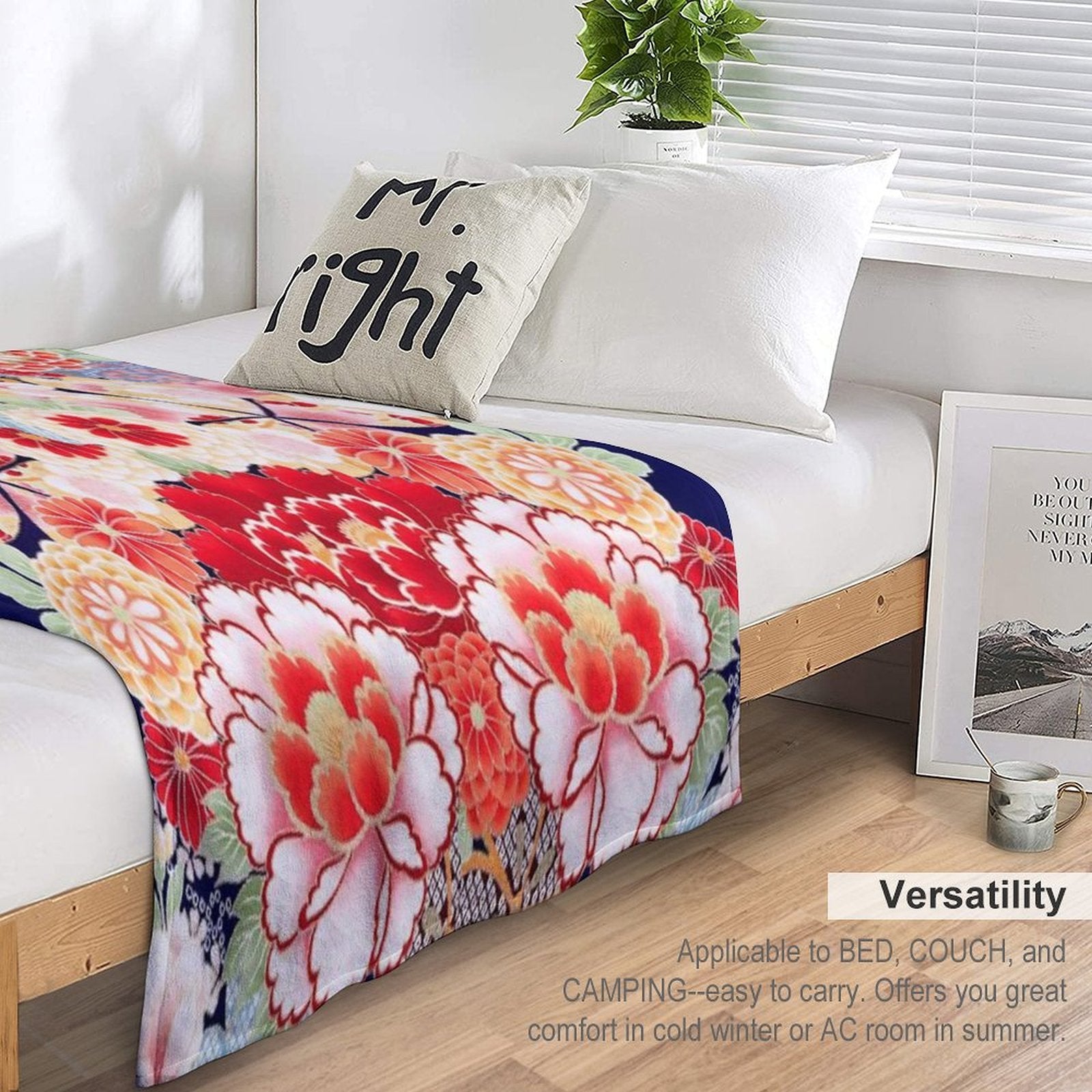 Why ANTIQUE JAPANESE FLOWERS Pink White Wild Roses Kimono Style Floral Blanket Stands Out: