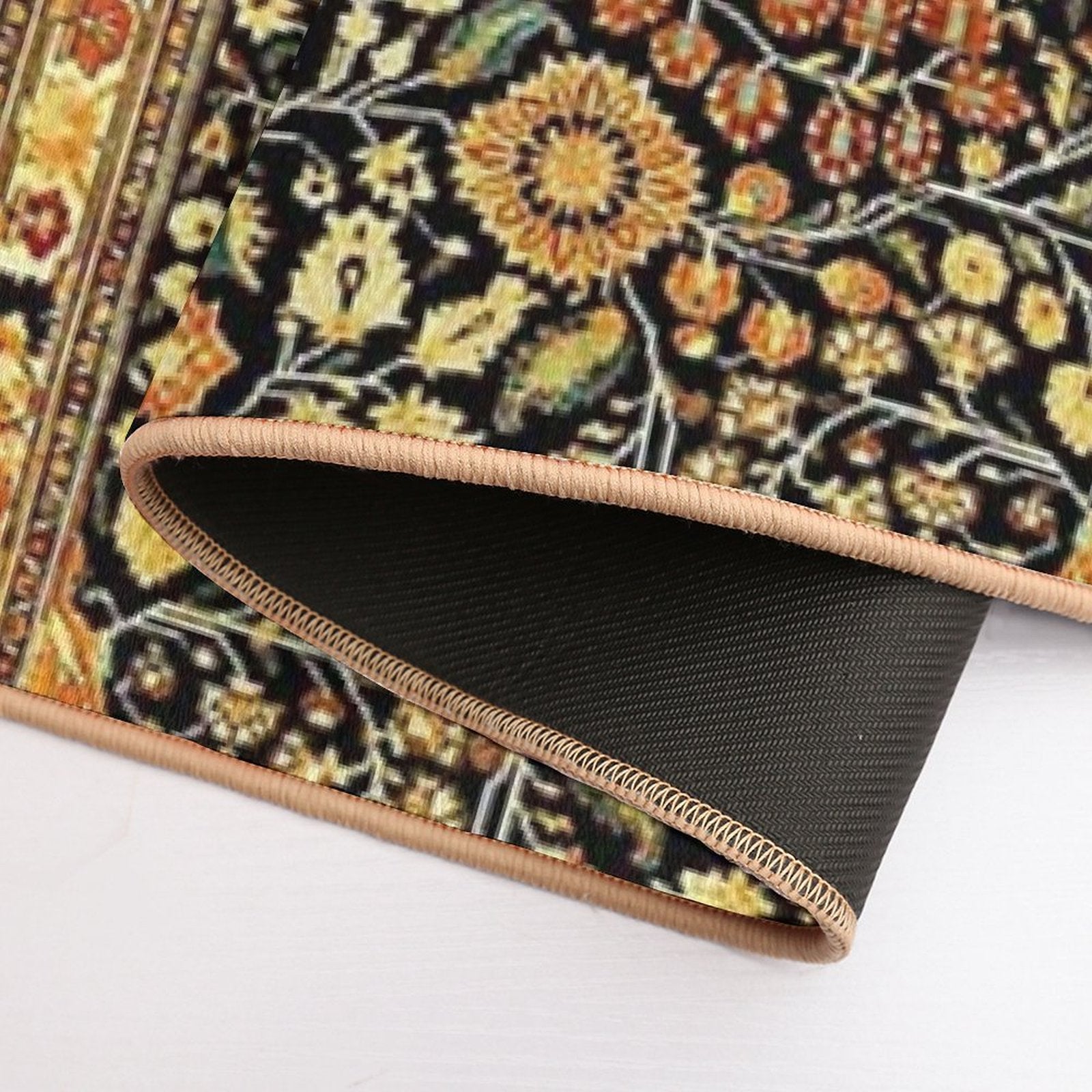 - Non-slip rubber backing grips floors securely, ideal for Antique Persian Mohtashem Kashan Rug Print Mat placements on tiles, wood, or marble.