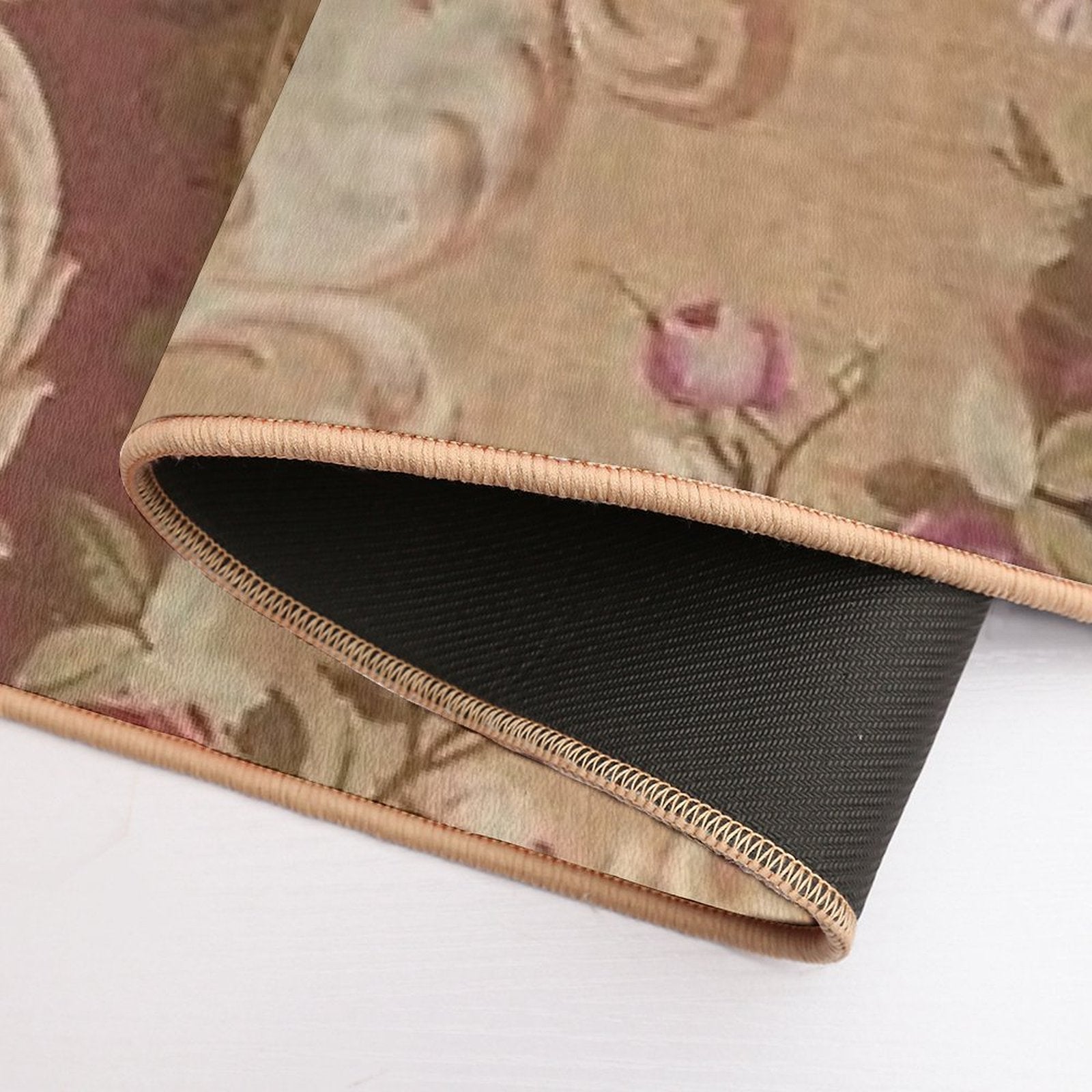 - Non-slip rubber backing grips floors securely, ideal for Antique Rose Floral French Aubusson Rug Print Mat placements on tiles, wood, or marble.