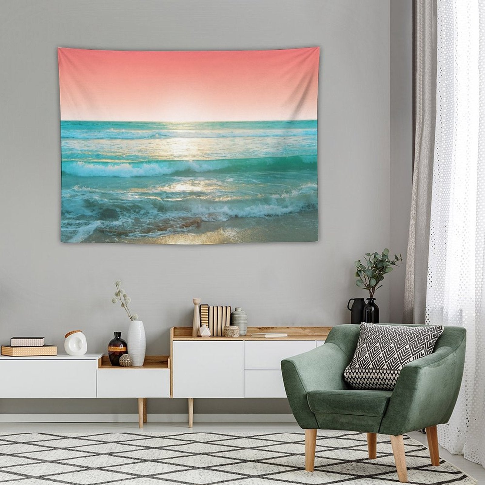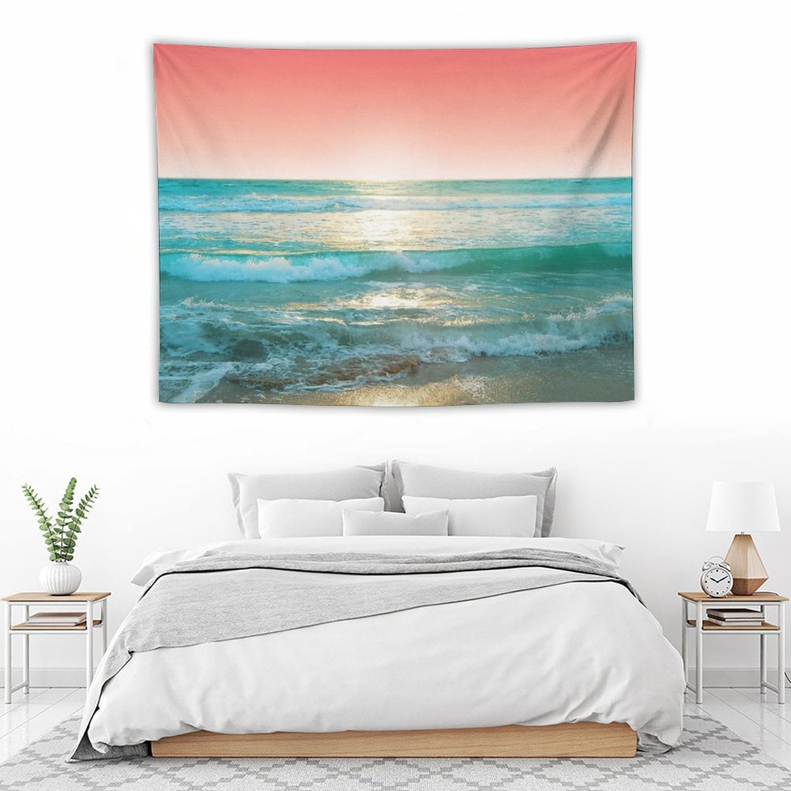 💕【ACCESSORY STRUCTURE】 "Aqua And Coral, 1 Tapestry" (lock edge), with 2 barb clips and 3 no trace nail hooks, the two ends of the wall blanket can be fixed on the wall, convenient installation, will not destroy the wall.