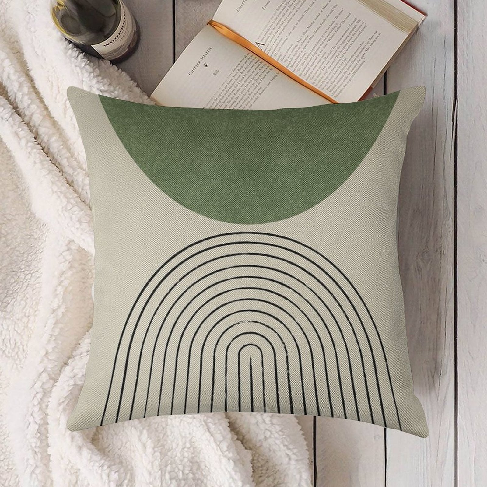 Arch Balance Green - Mid Century Modern Linen Throw Pillow Cover