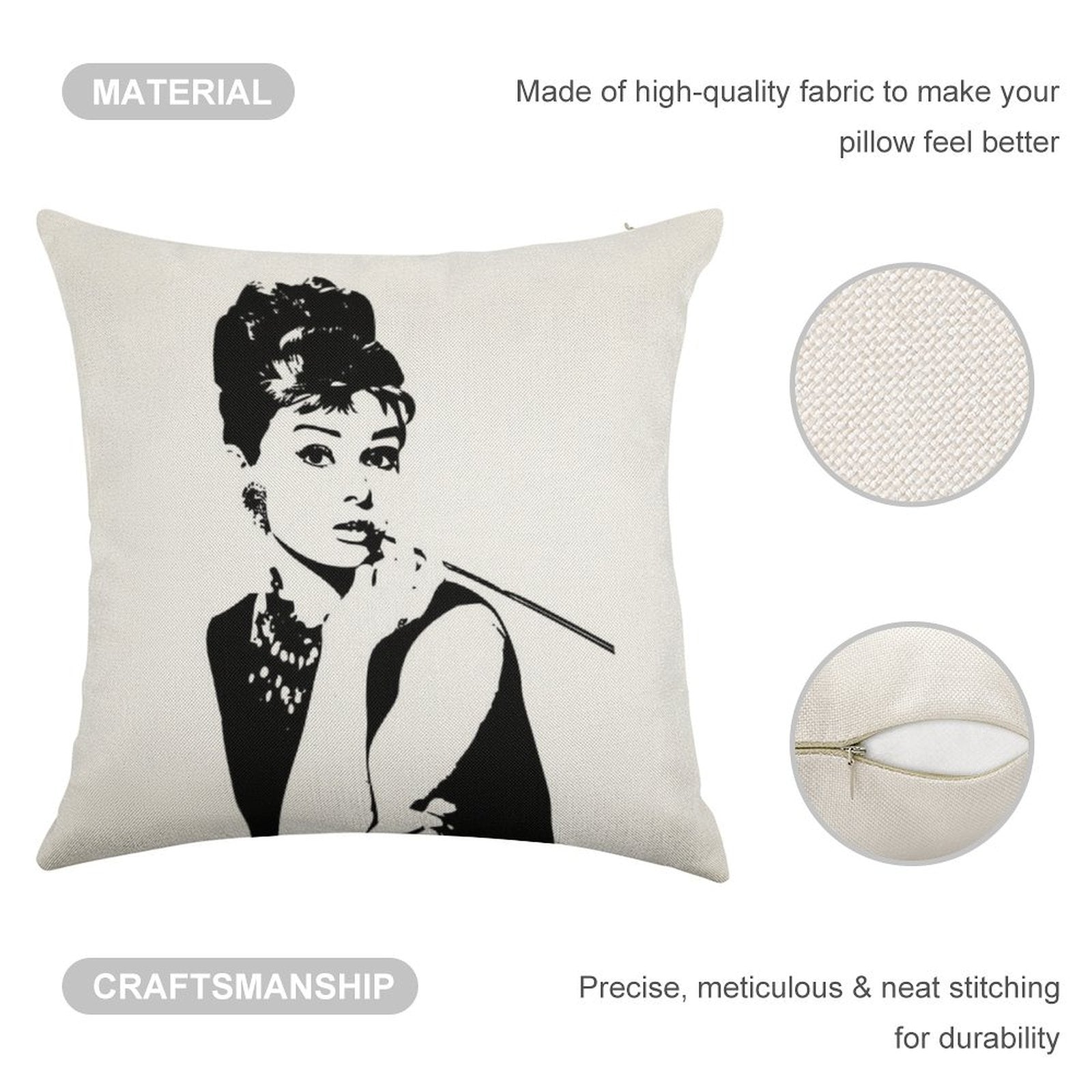 - Double-Stitched Edges: Precision stitching prevents fraying, stretching, and pilling, ensuring your Audrey Hepburn - An Icon Linen Throw Pillow Cover stays pristine through countless uses.