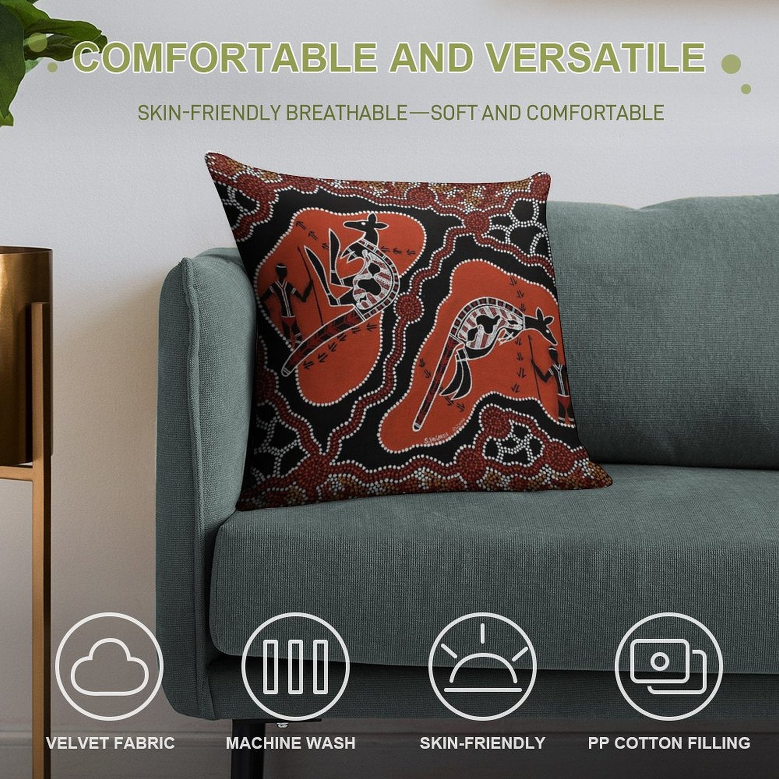 Authentic Aboriginal Art - Men Kangaroo Hunting Soft Fade-Resistant Throw Pillow