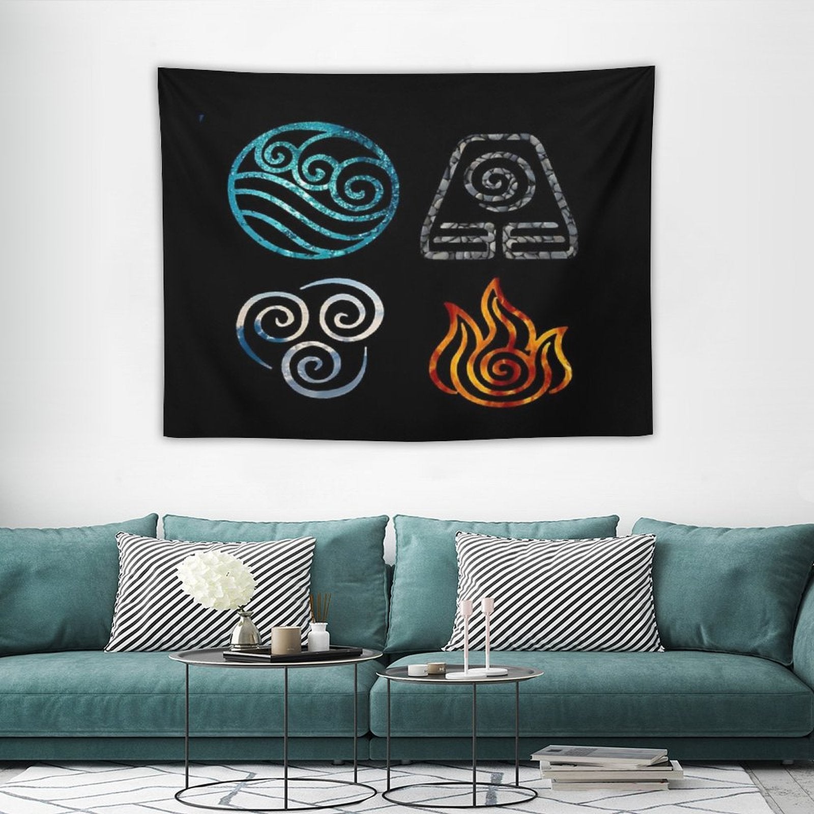 💓【MULTI-FUNCTION】 Used "Avatar The Last Airbender Element Symbols Tapestry" to decorate your bedroom, college dorm, room, living room, kitchen wall, can be used as tapestry or wall hanging, bedspread, tablecloth, dormitory decoration, beach shawl, tablecloth, etc.