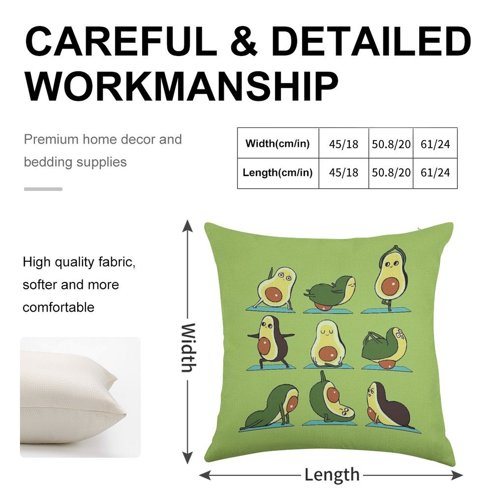 - Machine or hand washable (max 45°C). Avoid bleach and prolonged soaking to preserve the vibrant texture of your Avocado Yoga Luxury Pillow Cover.