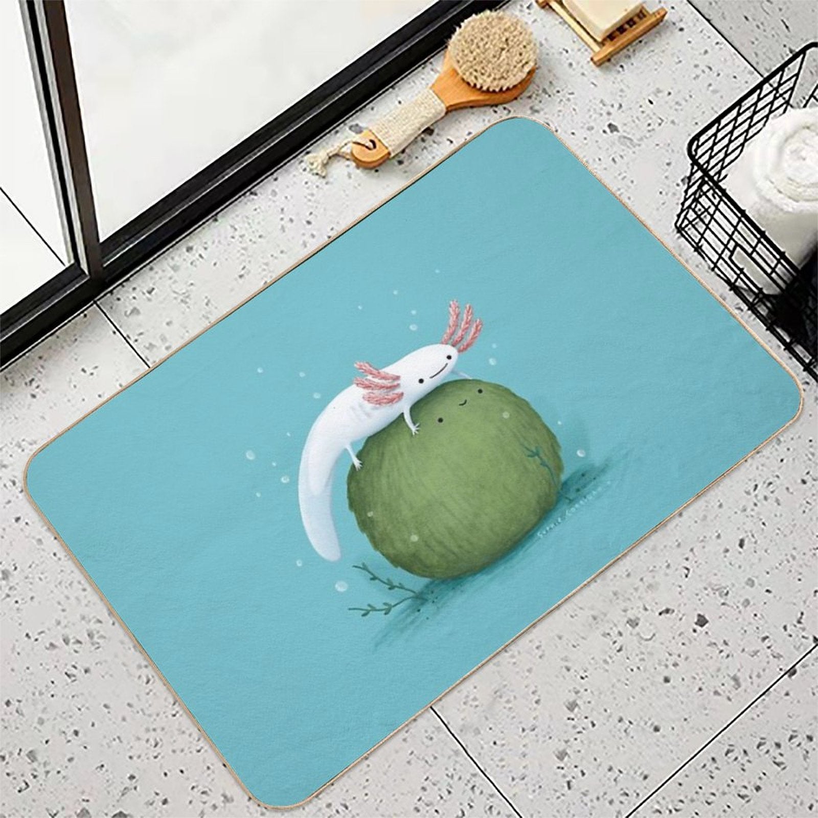- Use as a vanity rug, guest suite accent, or mudroom defender – the Axolotl on A Mossball Mat adapts to any space.