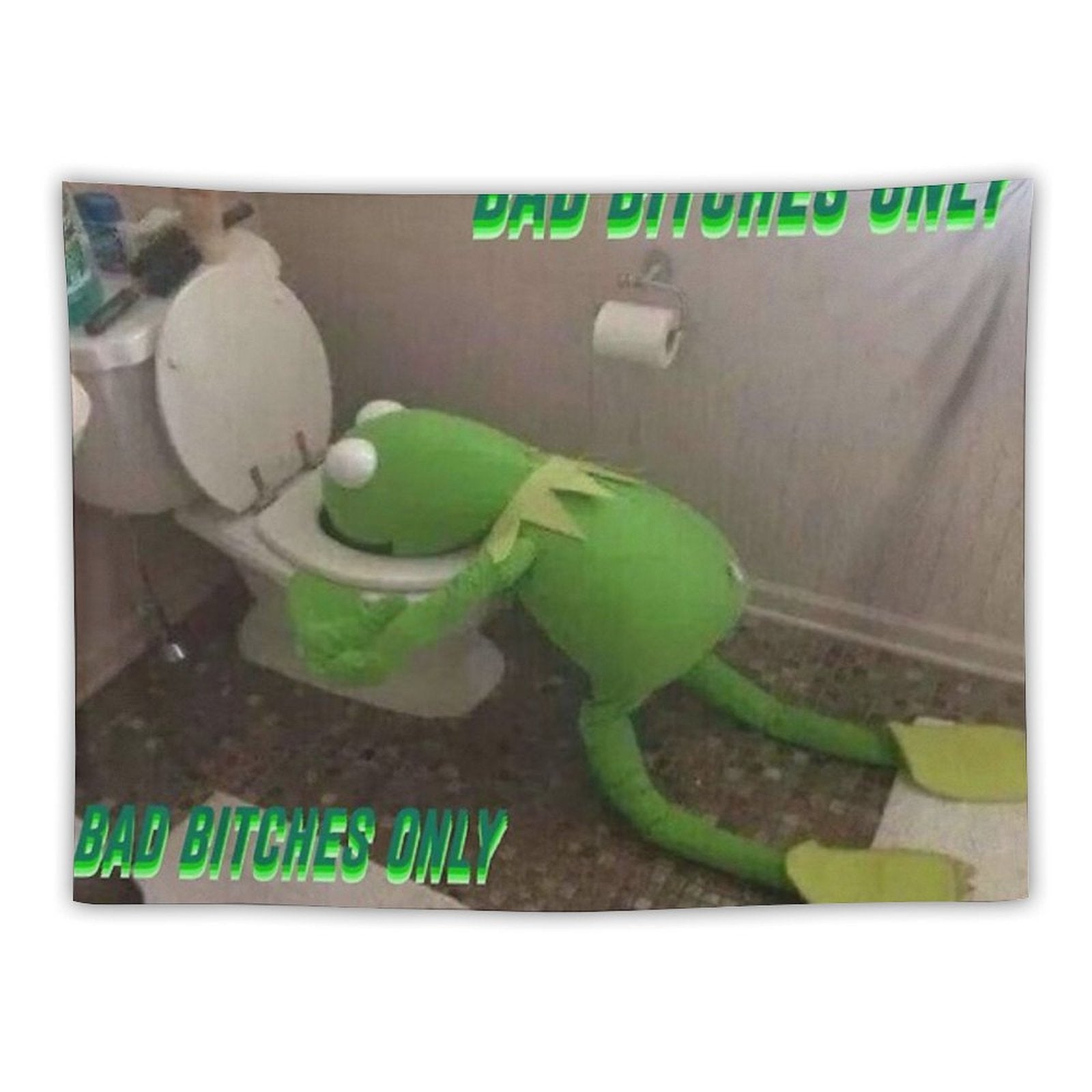 BionZax's Bad B Kermit Tapestry for Bedroom, College Dorm. Bad B Kermit Tapestry to decorate your bedroom, college dorm, living room, or kitchen wall, it is the best gift for funny, meme, aesthetic, trendy, simple, fashion, music, abstract, fantasy, modern tapestry for girls, men, boys, teen, women, kids.