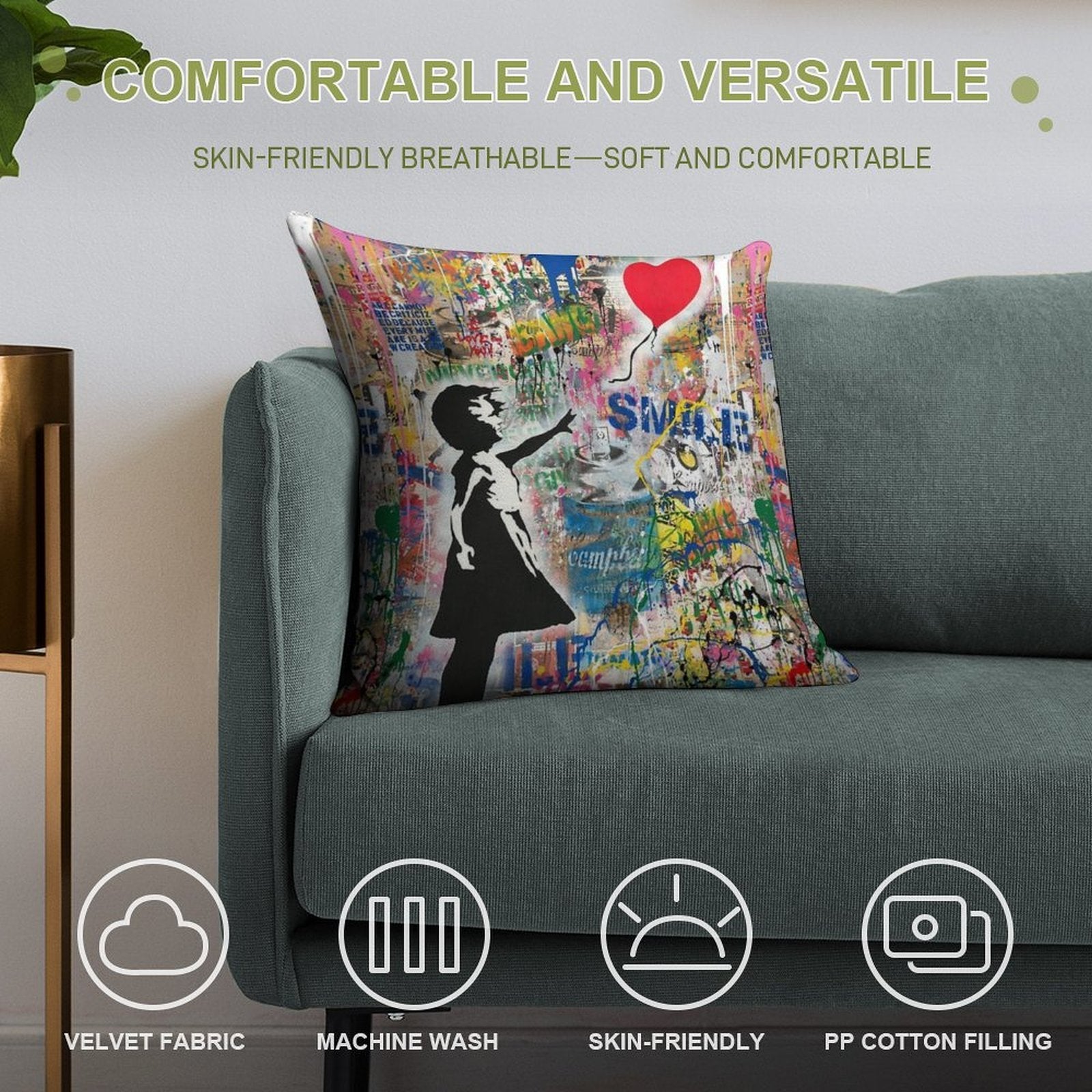 Balloon Girl Street Art Mashup Soft Anti-Pilling Throw Pillow