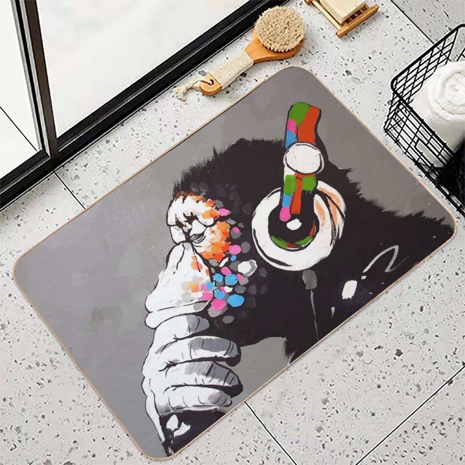 - Use as a vanity rug, guest suite accent, or mudroom defender – the Banksy DJ Monkey Thinker with Headphones Mat adapts to any space.
