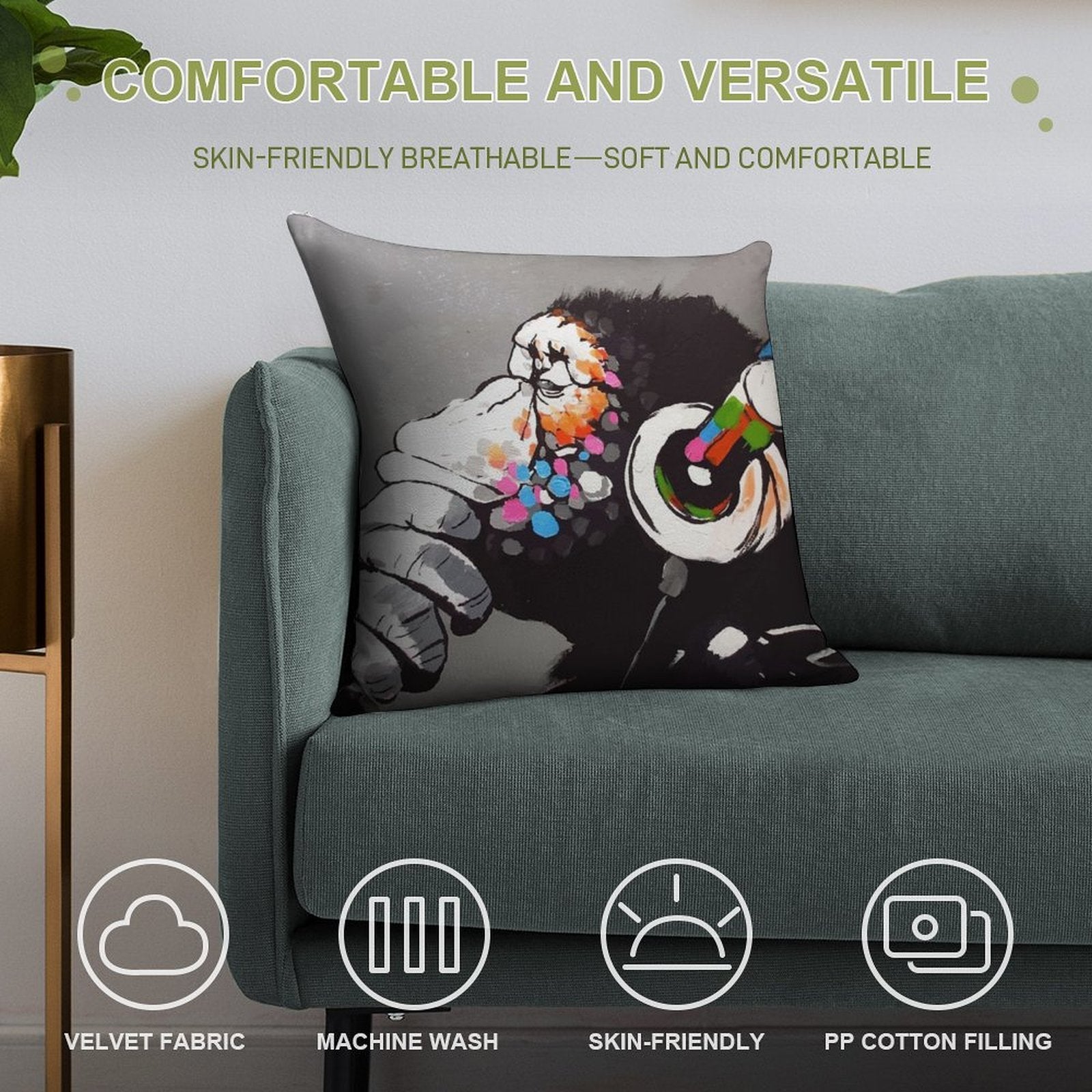 Banksy DJ Monkey Thinker with Headphones Soft Skin-Friendly Throw Pillow