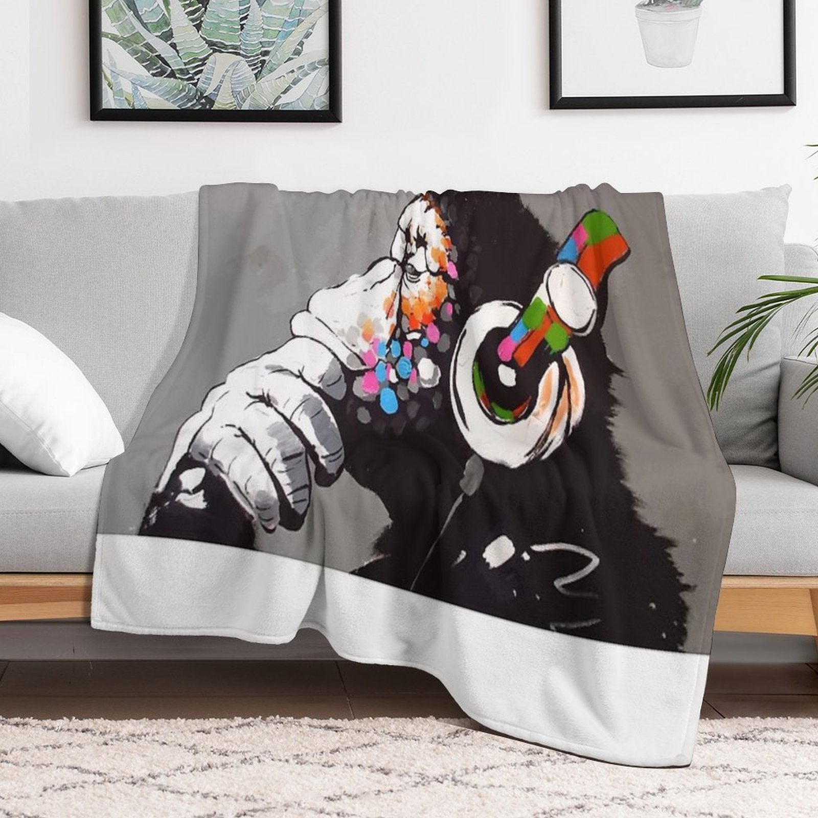 Banksy DJ Monkey Thinker with Headphones Throw Blanket