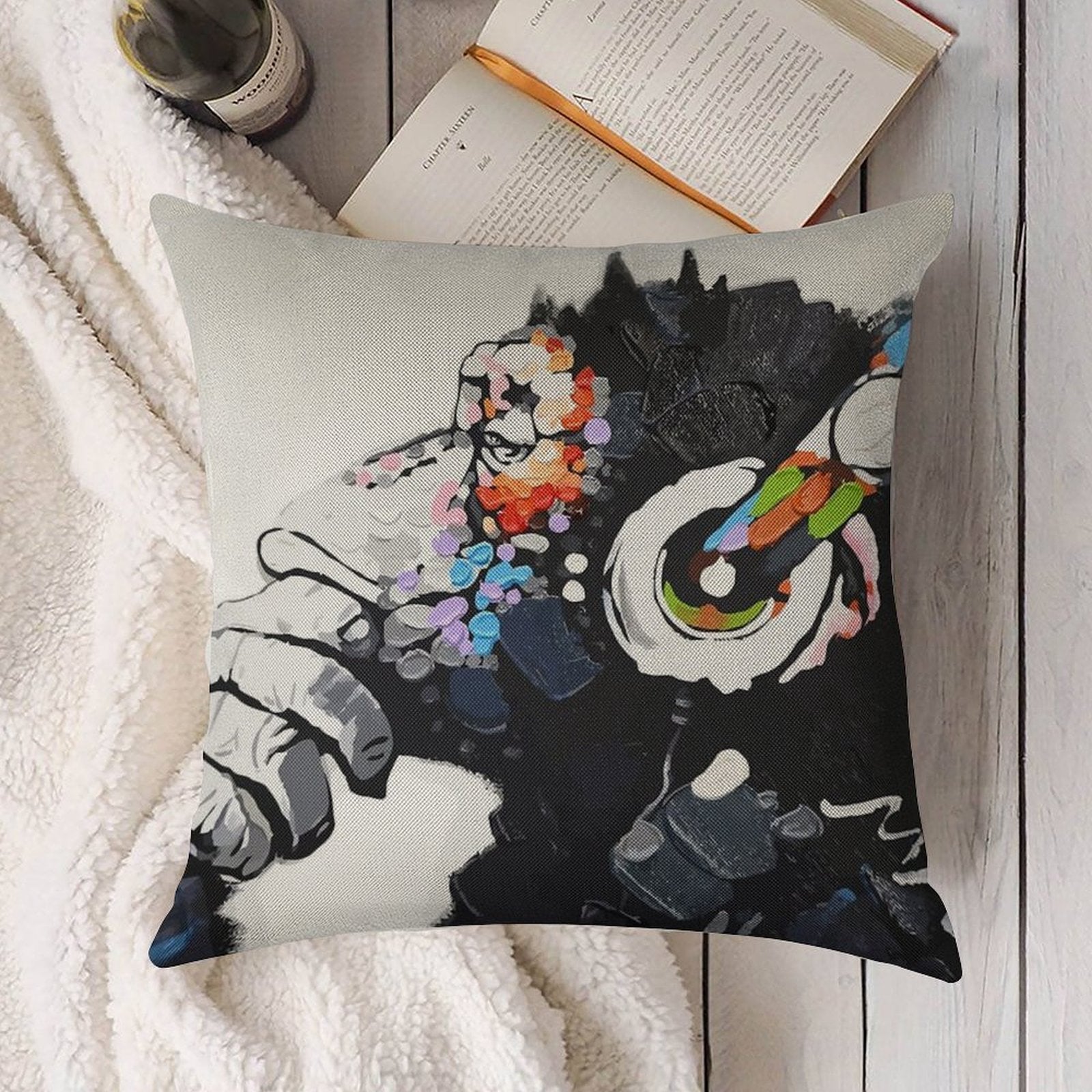 - Double-Stitched Edges: Precision stitching prevents fraying, stretching, and pilling, ensuring your Banksy DJ Monkey Thinker with Headphones White Linen Throw Pillow Cover stays pristine through countless uses.