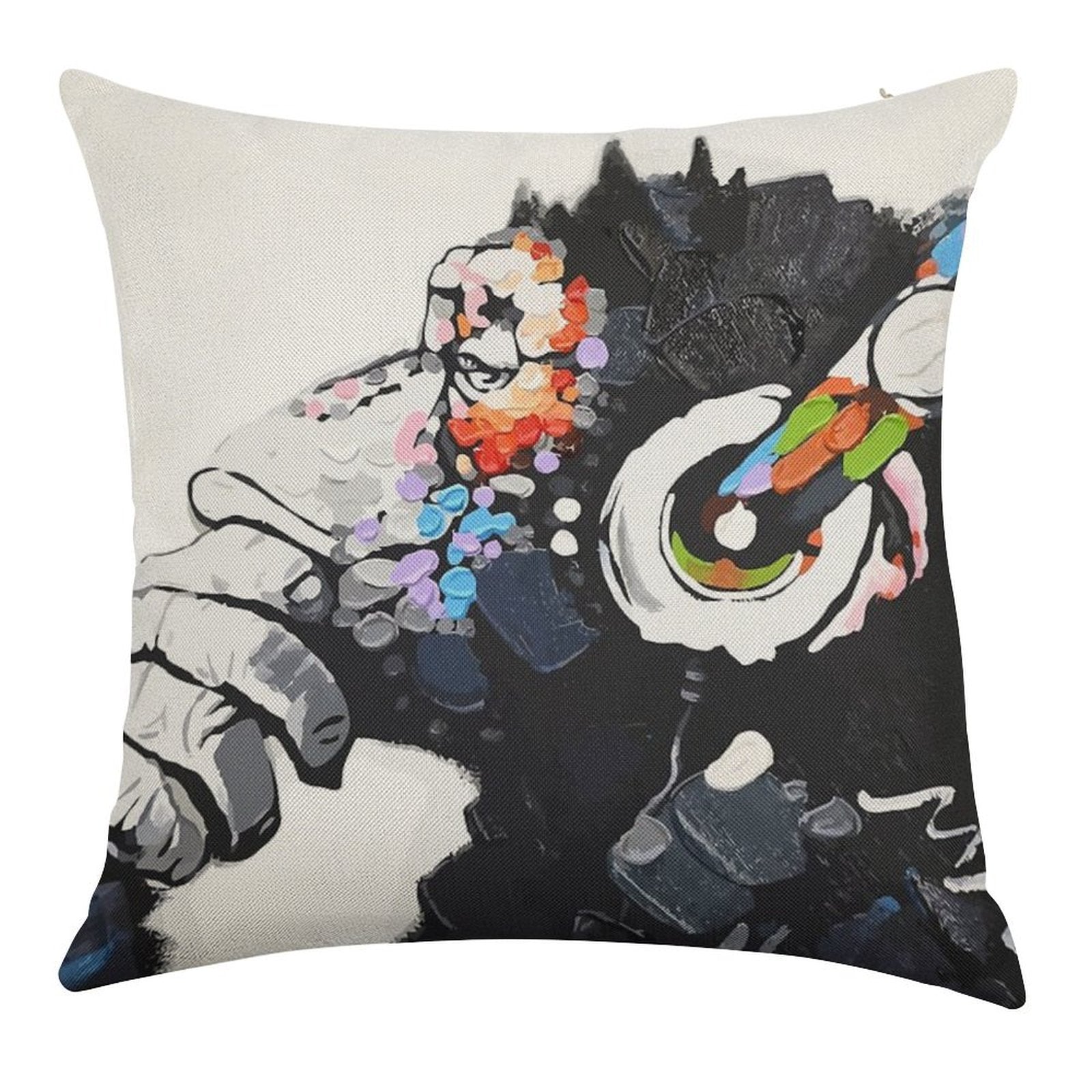 - Machine or hand washable (max 45°C). Avoid bleach and prolonged soaking to preserve the vibrant texture of your Banksy DJ Monkey Thinker with Headphones White Luxury Pillow Cover.