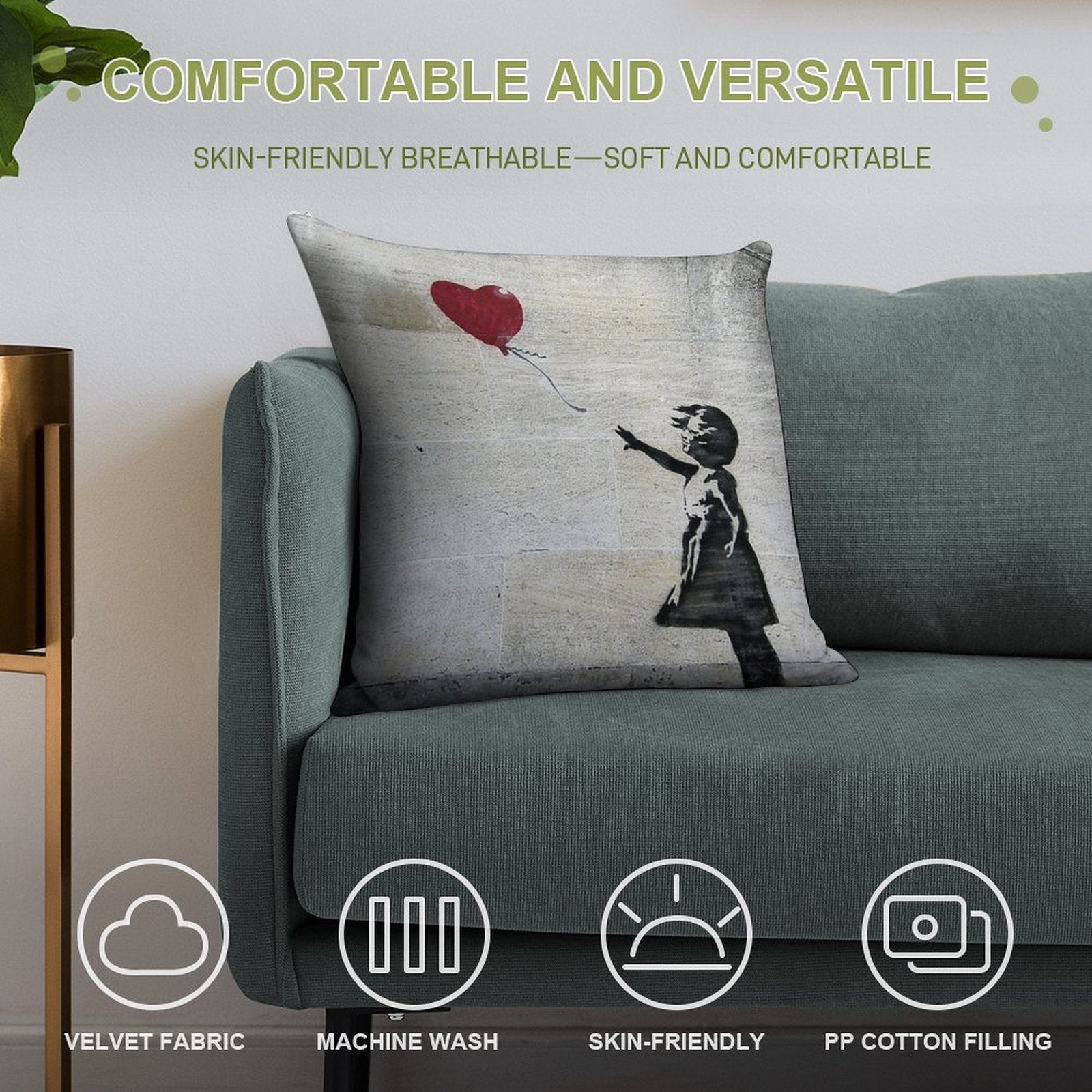 Banksy's Girl with A Red Balloon Soft Washable Throw Pillow