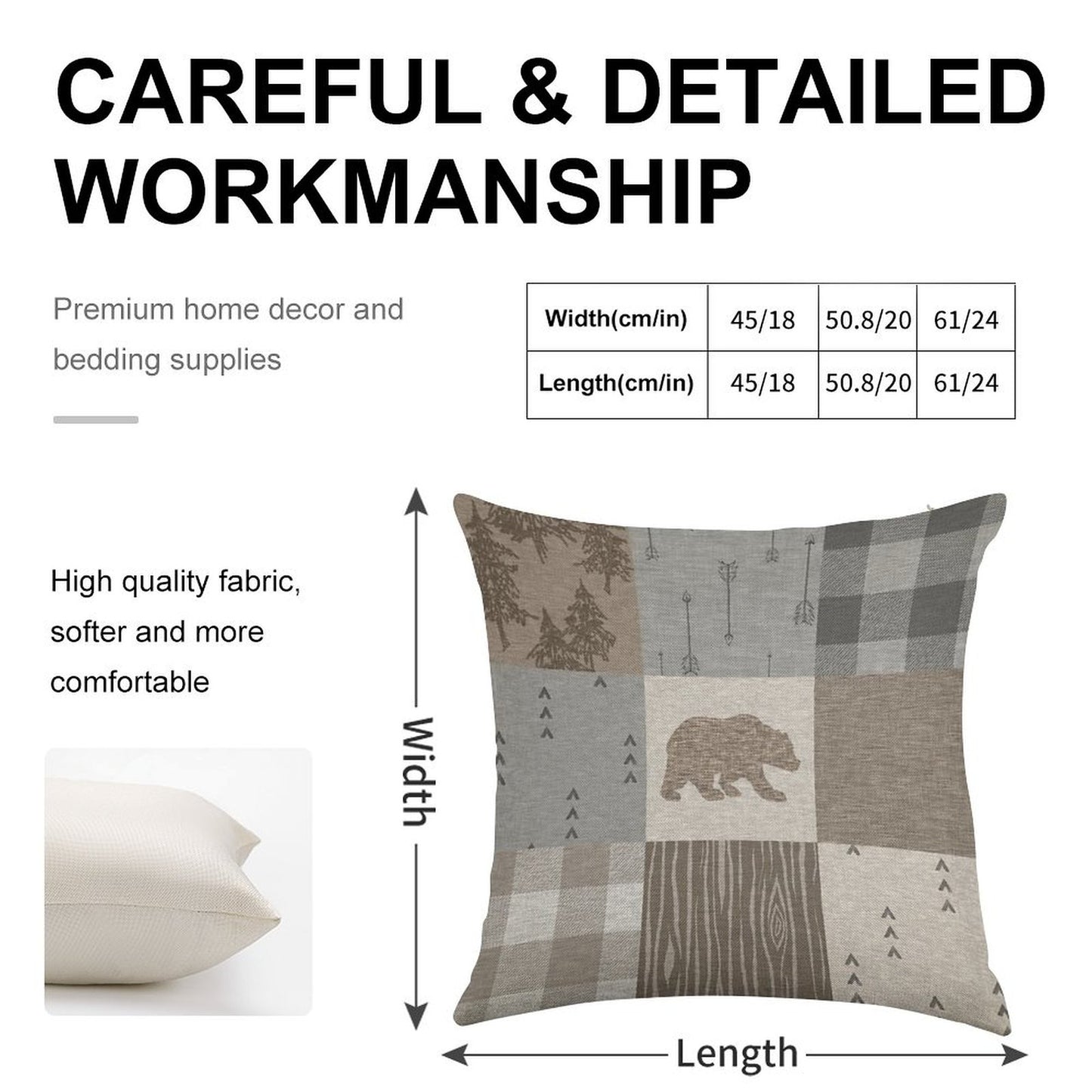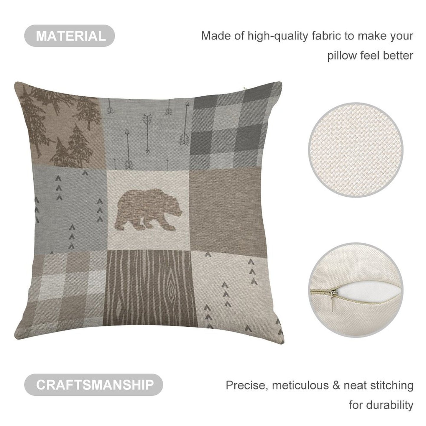 - Double-Stitched Edges: Precision stitching prevents fraying, stretching, and pilling, ensuring your Bear Patchwork - Rustic Neutrals Linen Throw Pillow Cover stays pristine through countless uses.