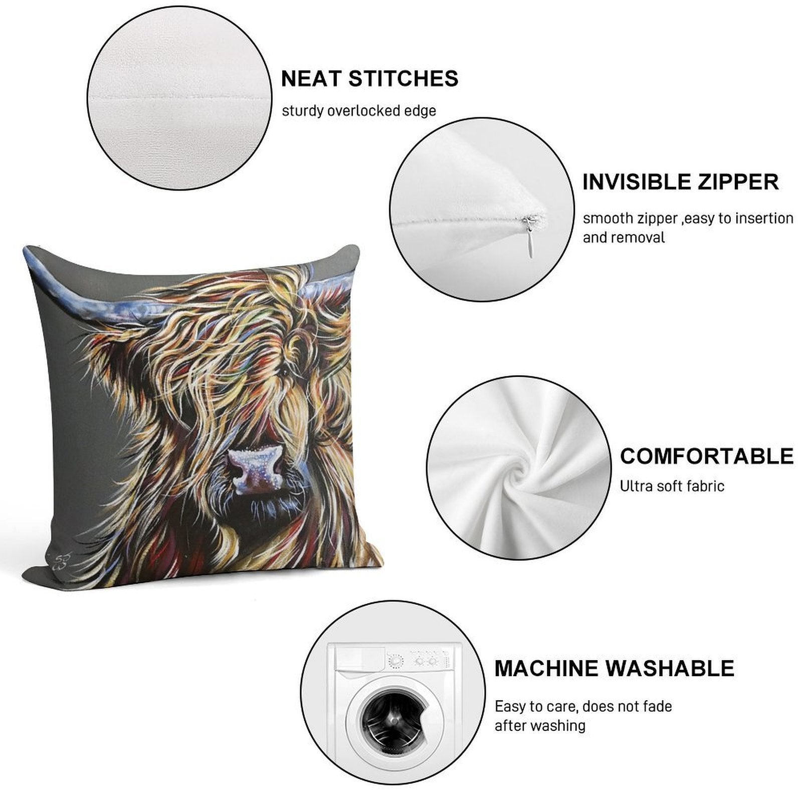 Beau The Colourful Highland Cow Soft Ultra-Soft Texture Throw Pillow