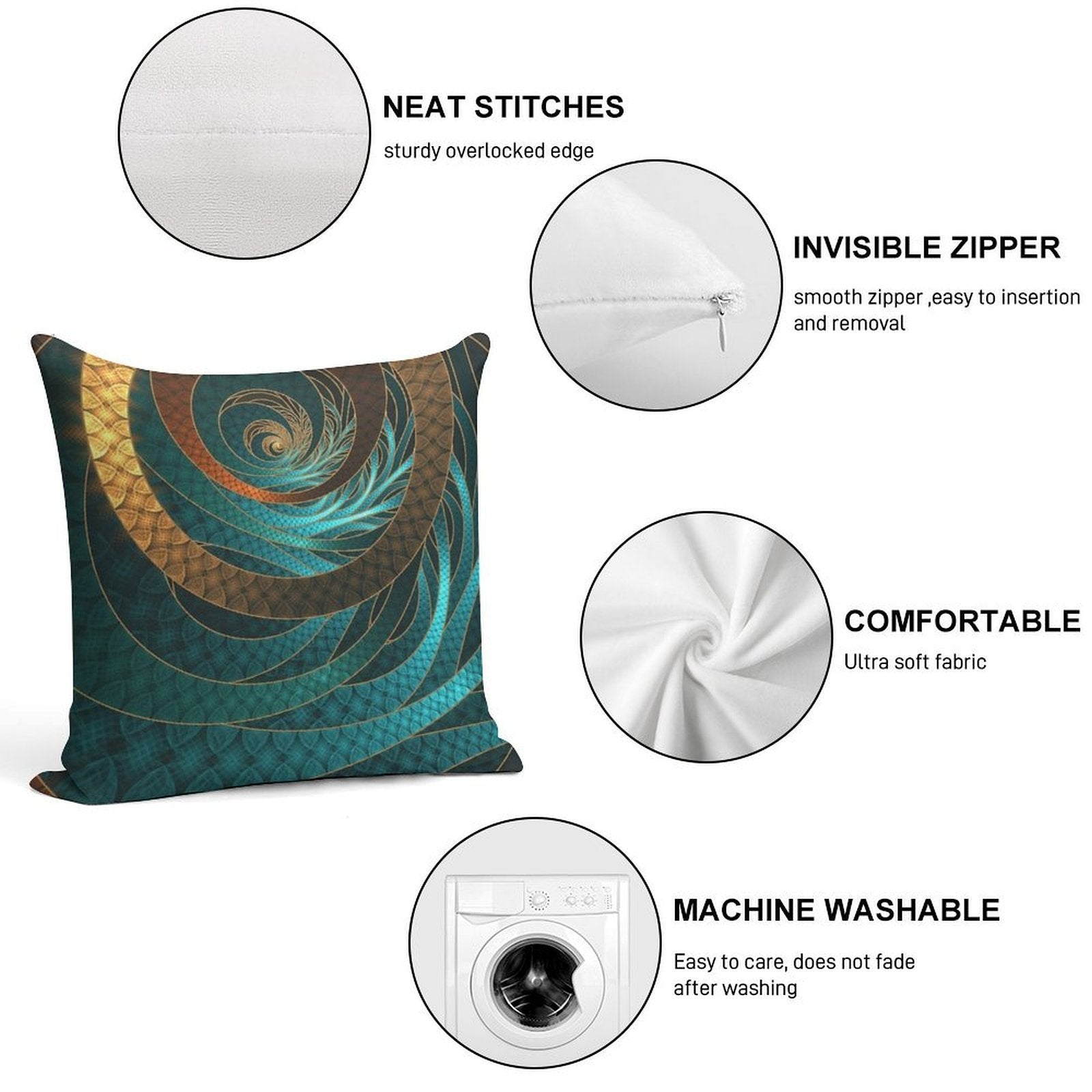 - Reinforced stitching along the edges prevents fraying and extends the life of your Beautiful Corded Leather Turquoise Fractal Bangles Pillowcase.