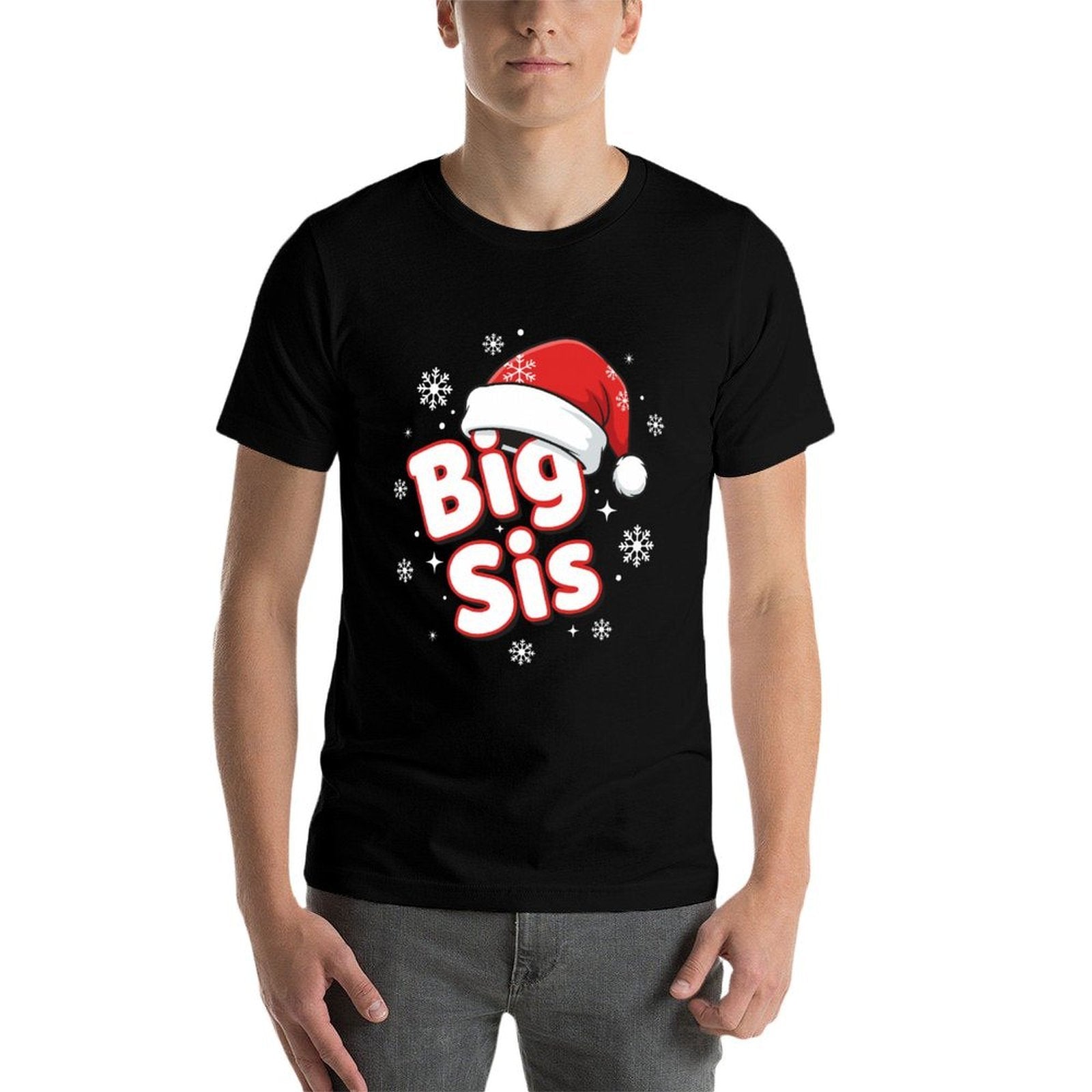 Big Sis Santa Hat Christmas Sister Matching Family Holiday Summer-ready Fabric T-Shirt