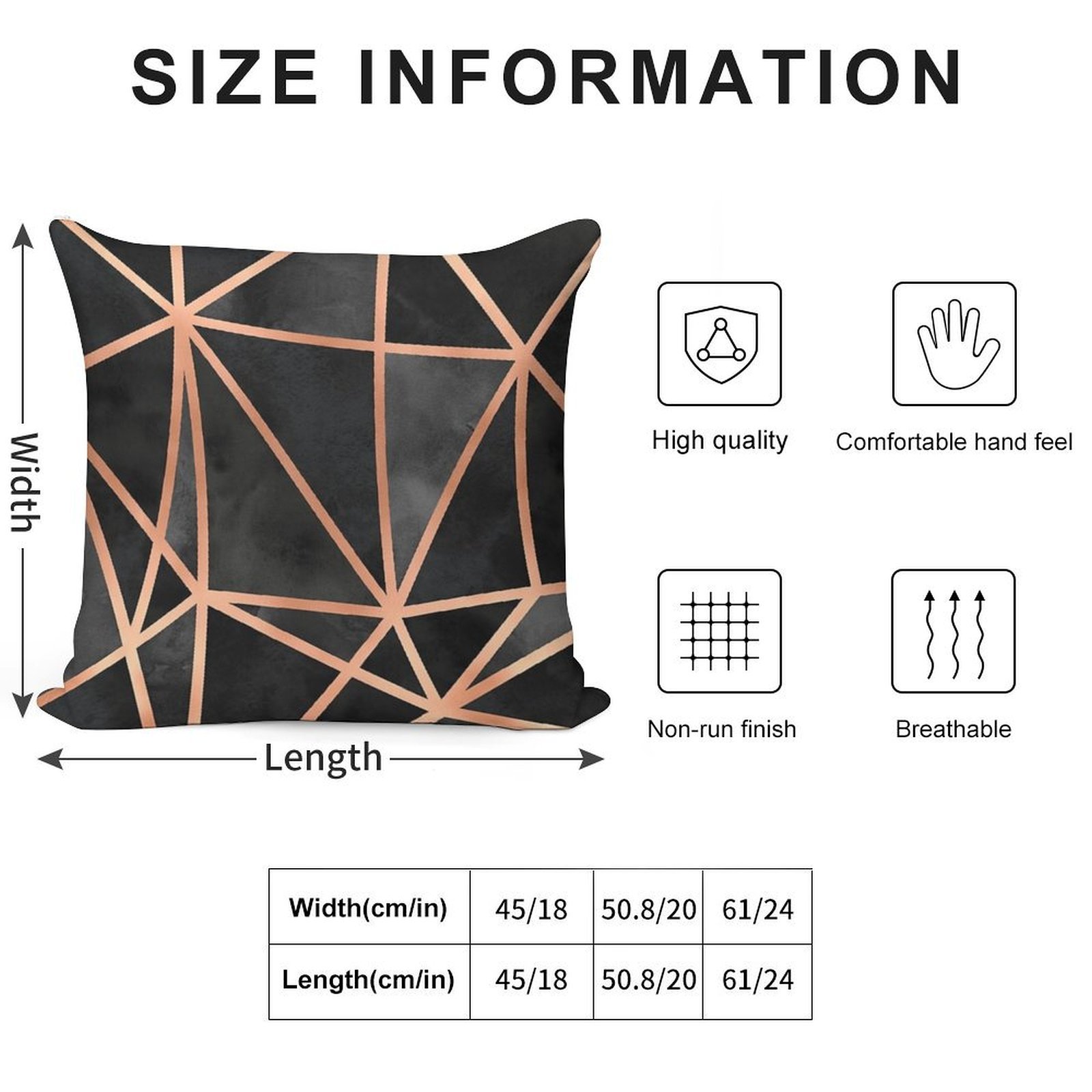 - Reinforced stitching along the edges prevents fraying and extends the life of your Black And Copper Geo Pillowcase.