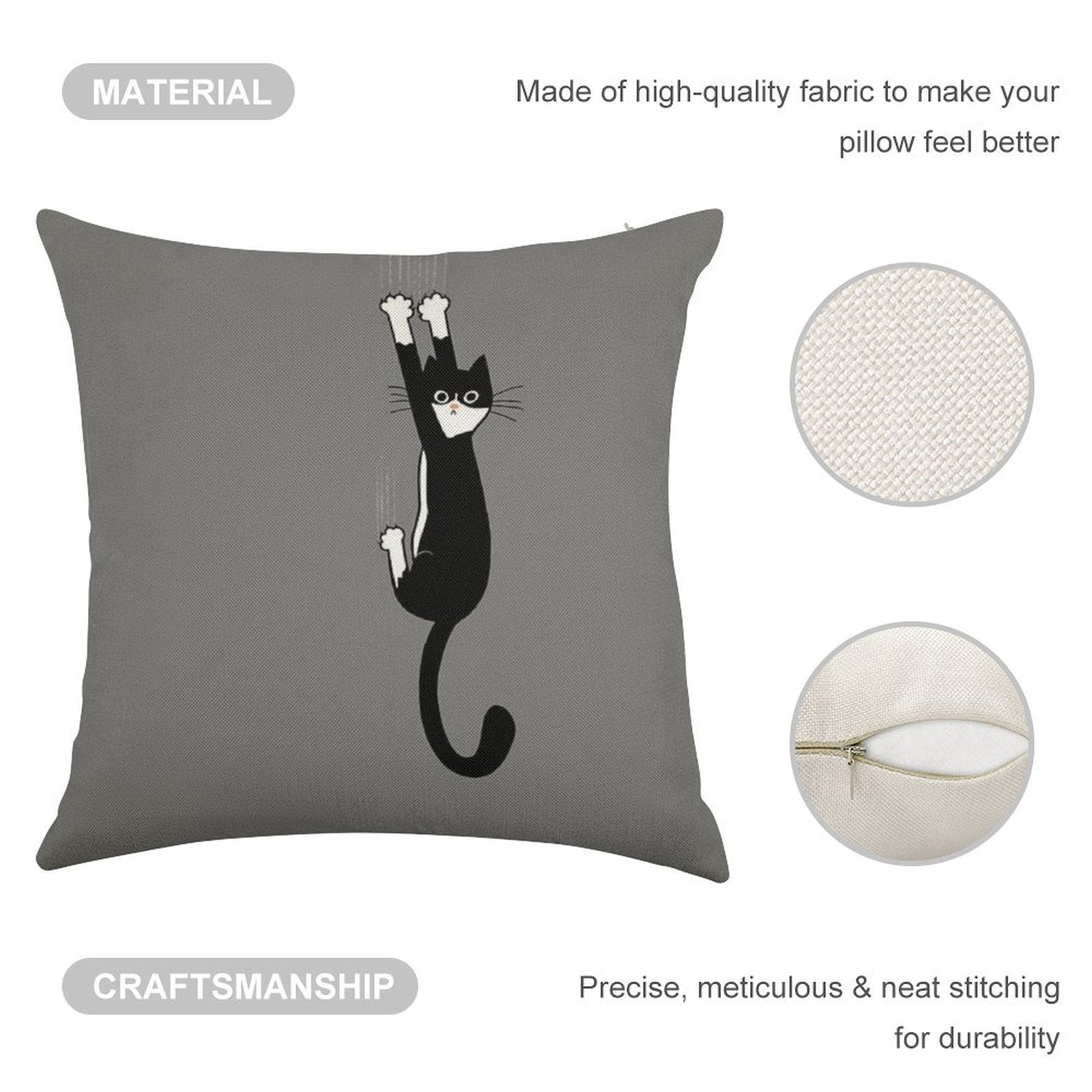 - Double-Stitched Edges: Precision stitching prevents fraying, stretching, and pilling, ensuring your Black And White Cat Hanging On Funny Tuxedo Cat Linen Throw Pillow Cover stays pristine through countless uses.