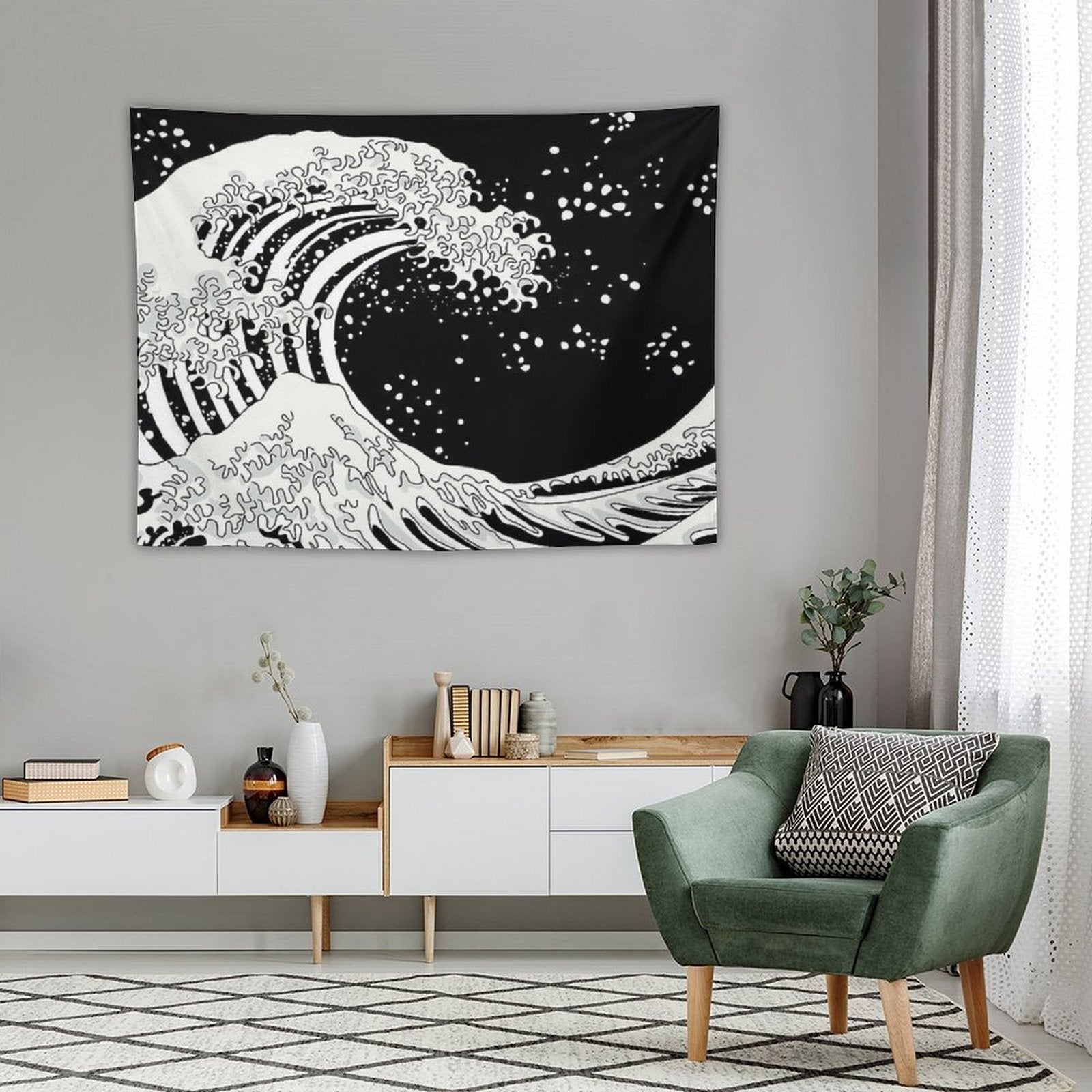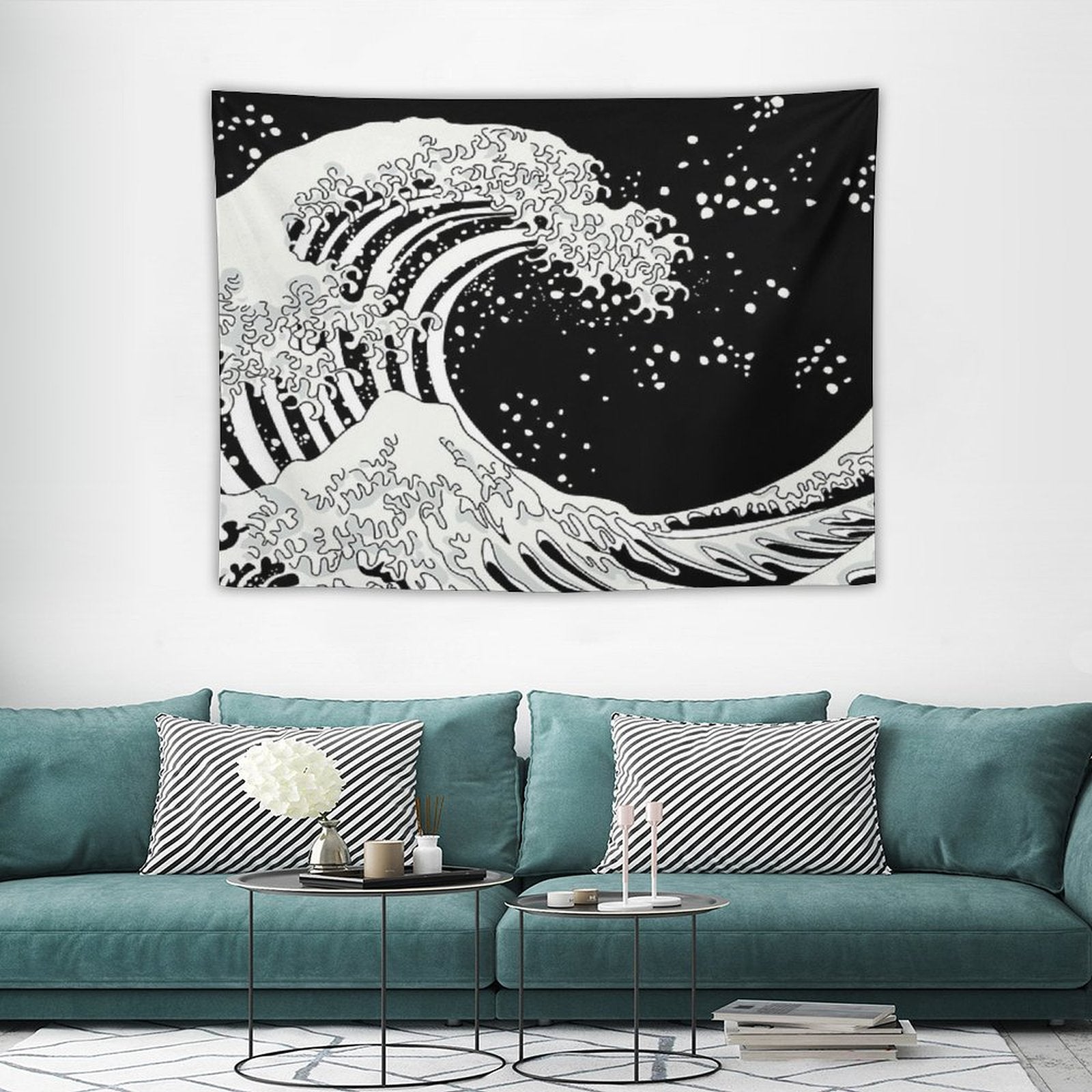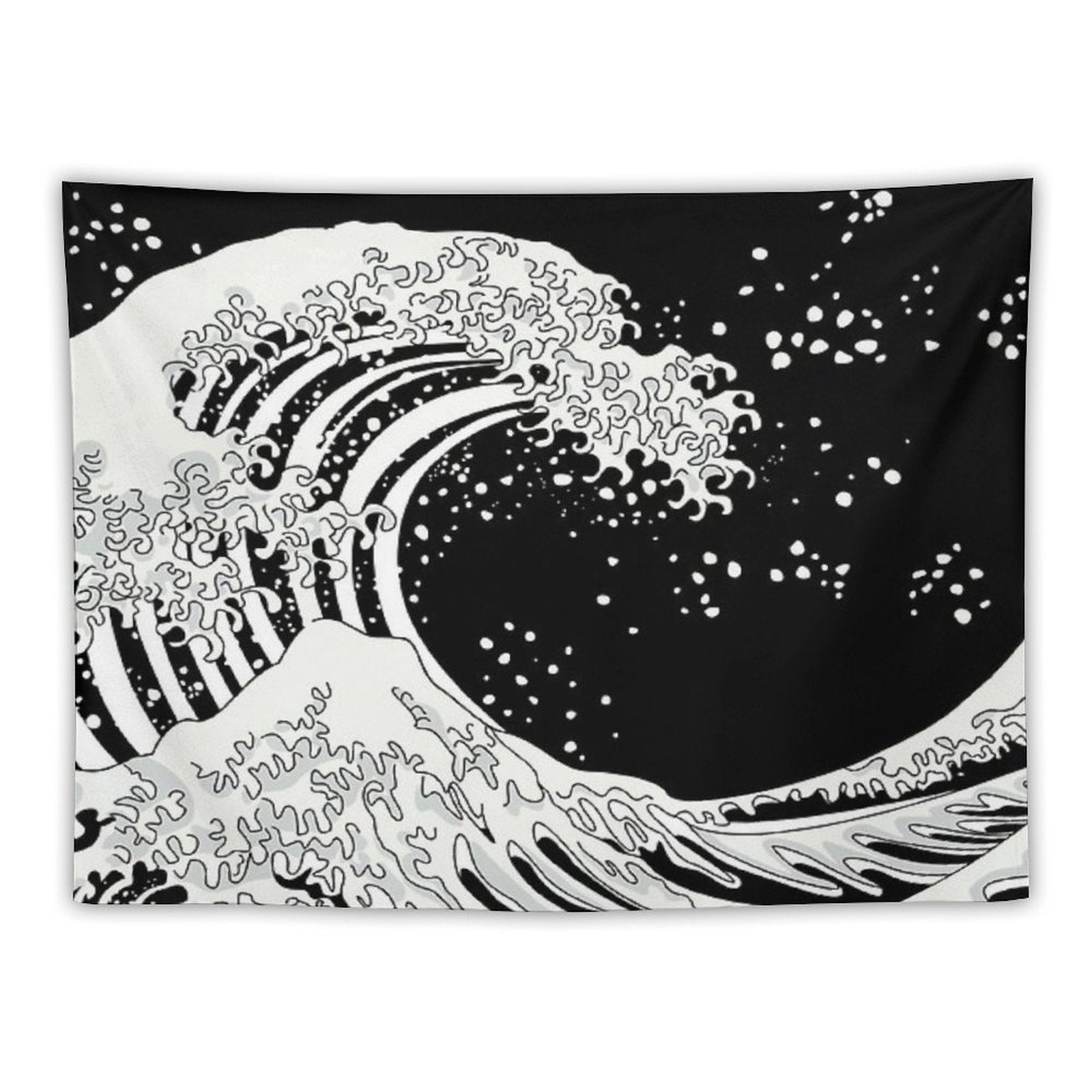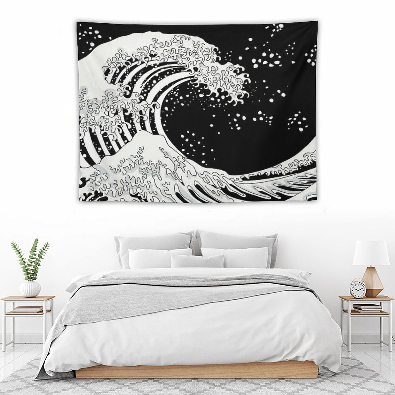 BionZax's Black And White Great Wave Tapestry for Bedroom, College Dorm. Black And White Great Wave Tapestry to decorate your bedroom, college dorm, living room, or kitchen wall, it is the best gift for funny, meme, aesthetic, trendy, simple, fashion, music, abstract, fantasy, modern tapestry for girls, men, boys, teen, women, kids.