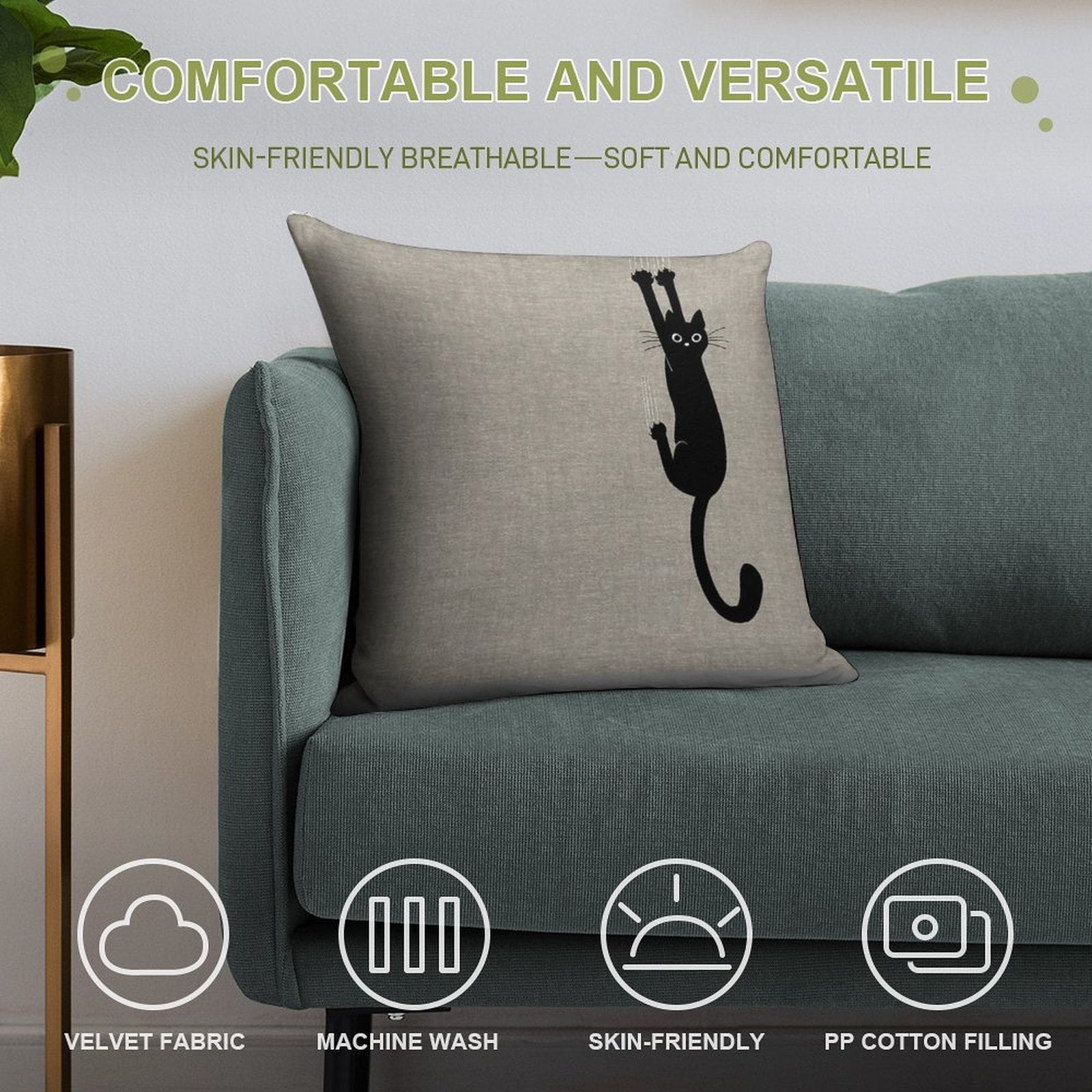 ✔️ Fits Any Style – Neutral tones and plush texture suit all Black Cat Holding On decors.