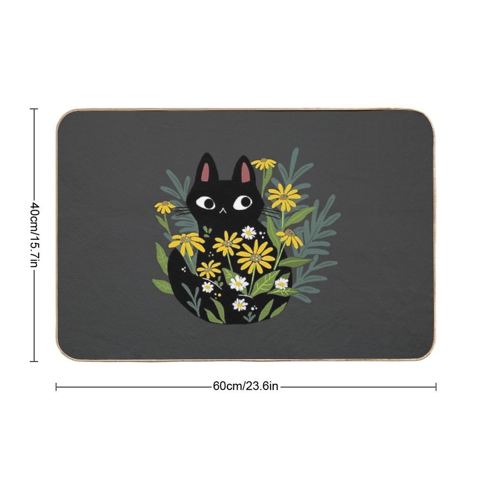 - Non-slip rubber backing grips floors securely, ideal for Black Cat with Flowers Mat placements on tiles, wood, or marble.