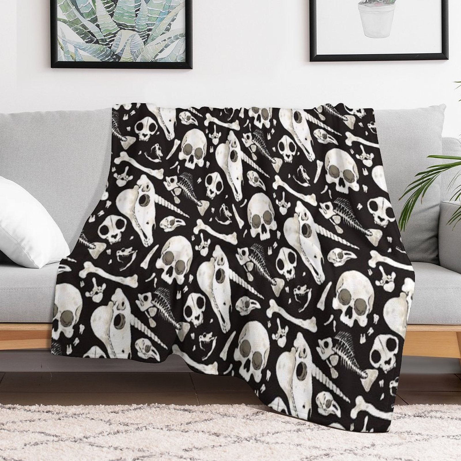 Black Skulls And Bones - Wunderkammer Throw Blanket