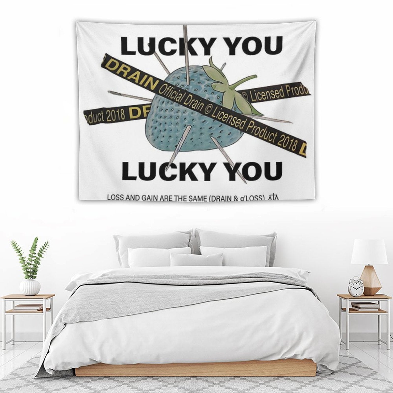 💓【MULTI-FUNCTION】 Used "Bladee Drain Gang Lucky You Strawberry Logo Tapestry" to decorate your bedroom, college dorm, room, living room, kitchen wall, can be used as tapestry or wall hanging, bedspread, tablecloth, dormitory decoration, beach shawl, tablecloth, etc.