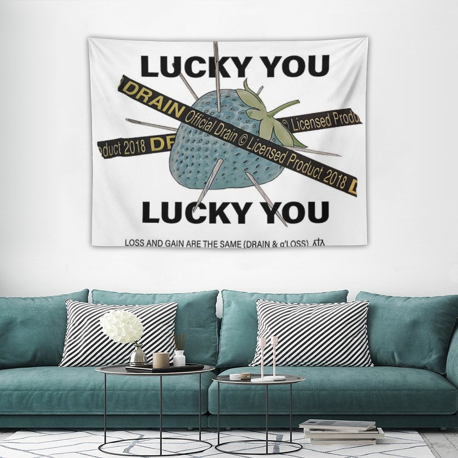 BionZax's Bladee Drain Gang Lucky You Strawberry Logo Tapestry for Bedroom, College Dorm. Bladee Drain Gang Lucky You Strawberry Logo Tapestry to decorate your bedroom, college dorm, living room, or kitchen wall, it is the best gift for funny, meme, aesthetic, trendy, simple, fashion, music, abstract, fantasy, modern tapestry for girls, men, boys, teen, women, kids.