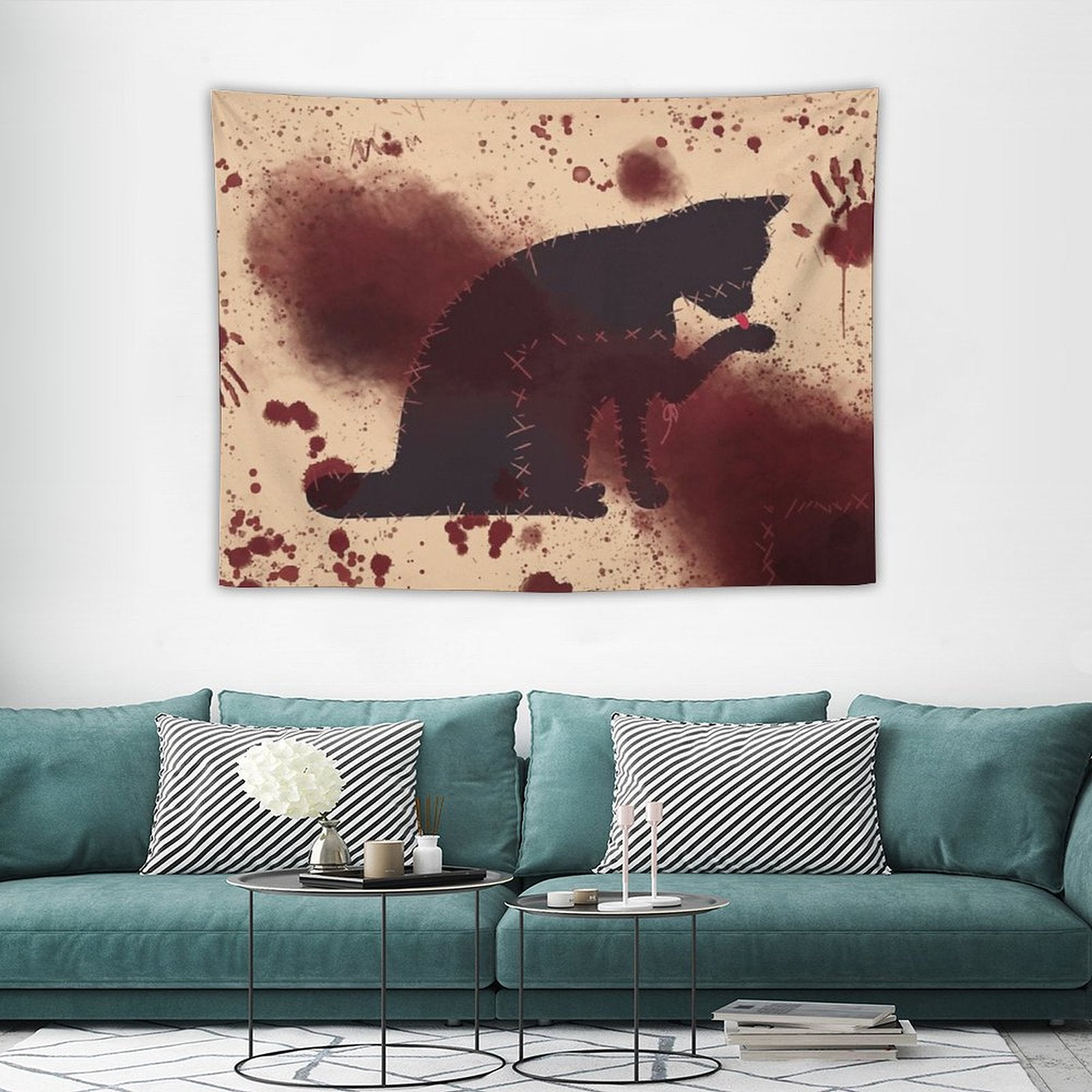 💓【MULTI-FUNCTION】 Used "Bloody Cat Flag Tapestry" to decorate your bedroom, college dorm, room, living room, kitchen wall, can be used as tapestry or wall hanging, bedspread, tablecloth, dormitory decoration, beach shawl, tablecloth, etc.