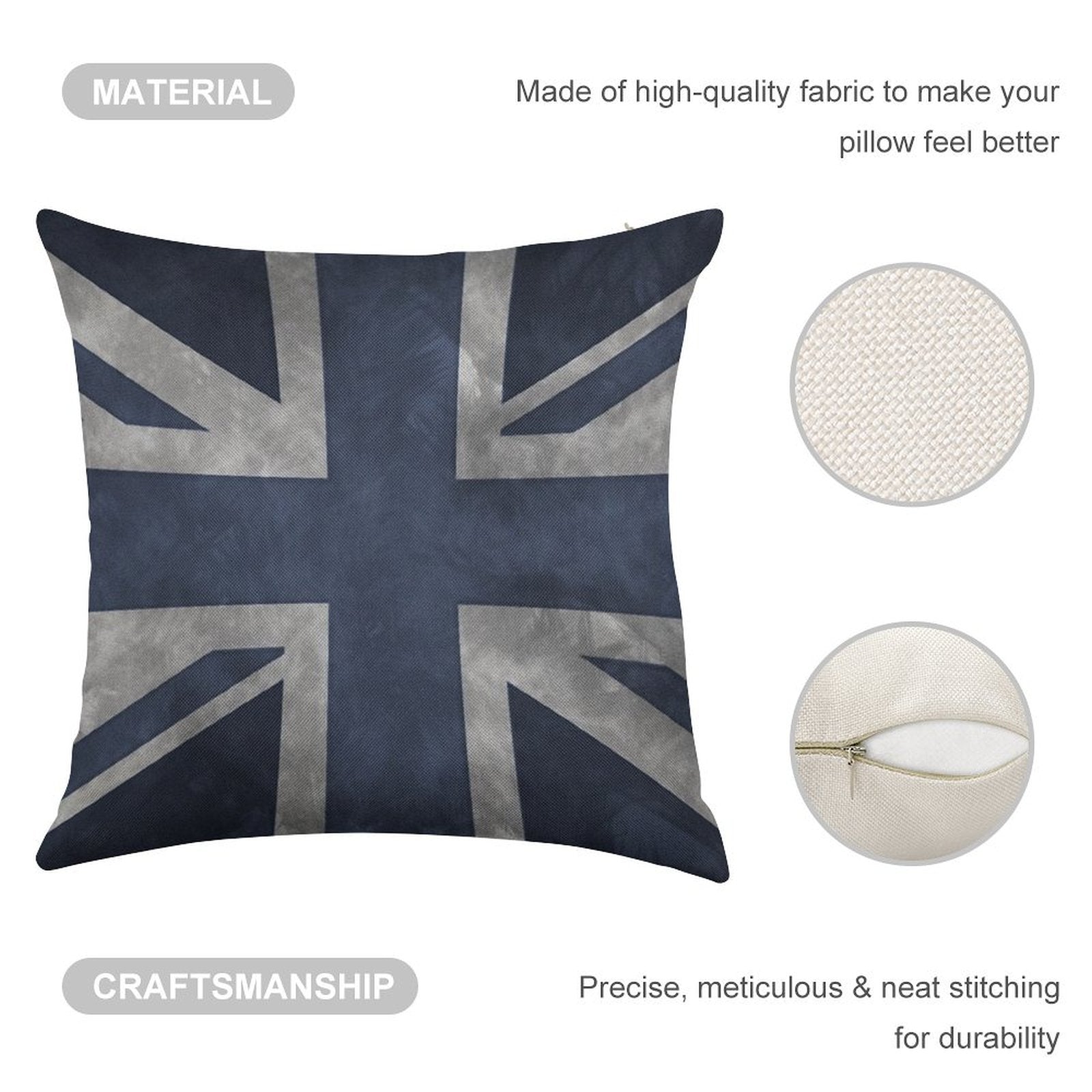 - Double-Stitched Edges: Precision stitching prevents fraying, stretching, and pilling, ensuring your Blue Distressed Union Jack Linen Throw Pillow Cover stays pristine through countless uses.