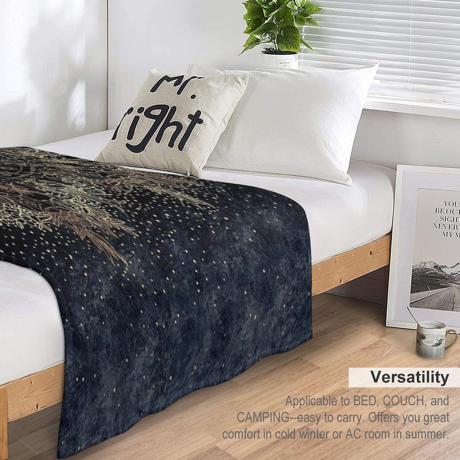 - Perfect for chilly movie nights, camping trips, or adding a cozy touch to your Blue Gold Mandala Floral-styled living space.