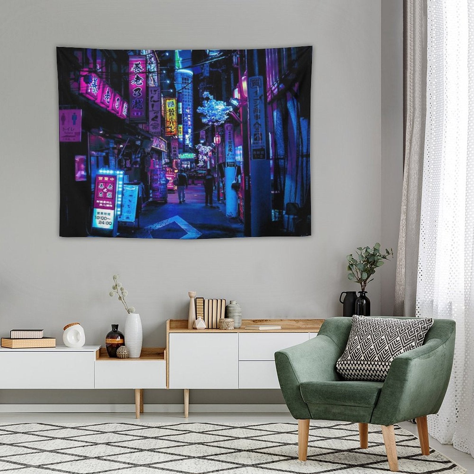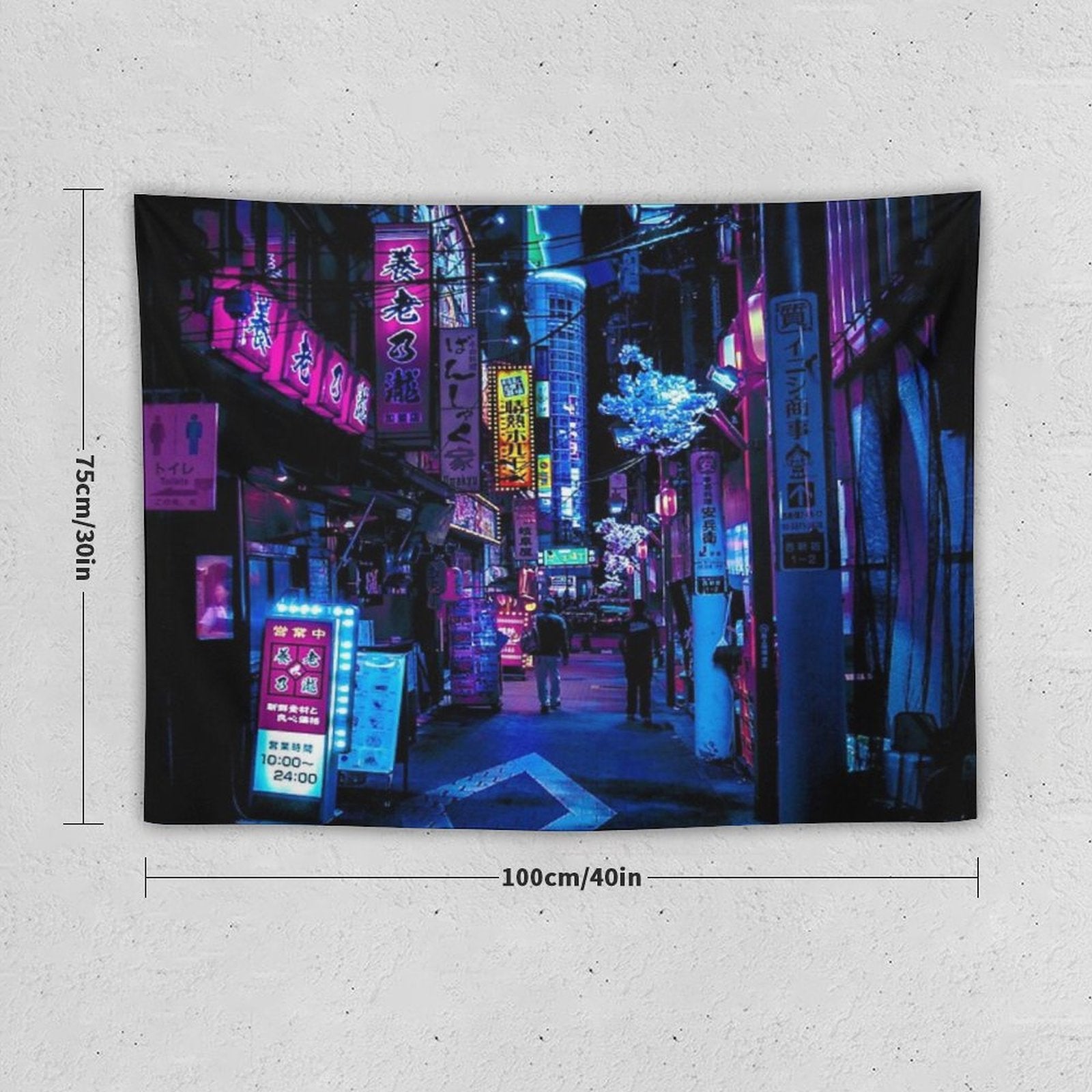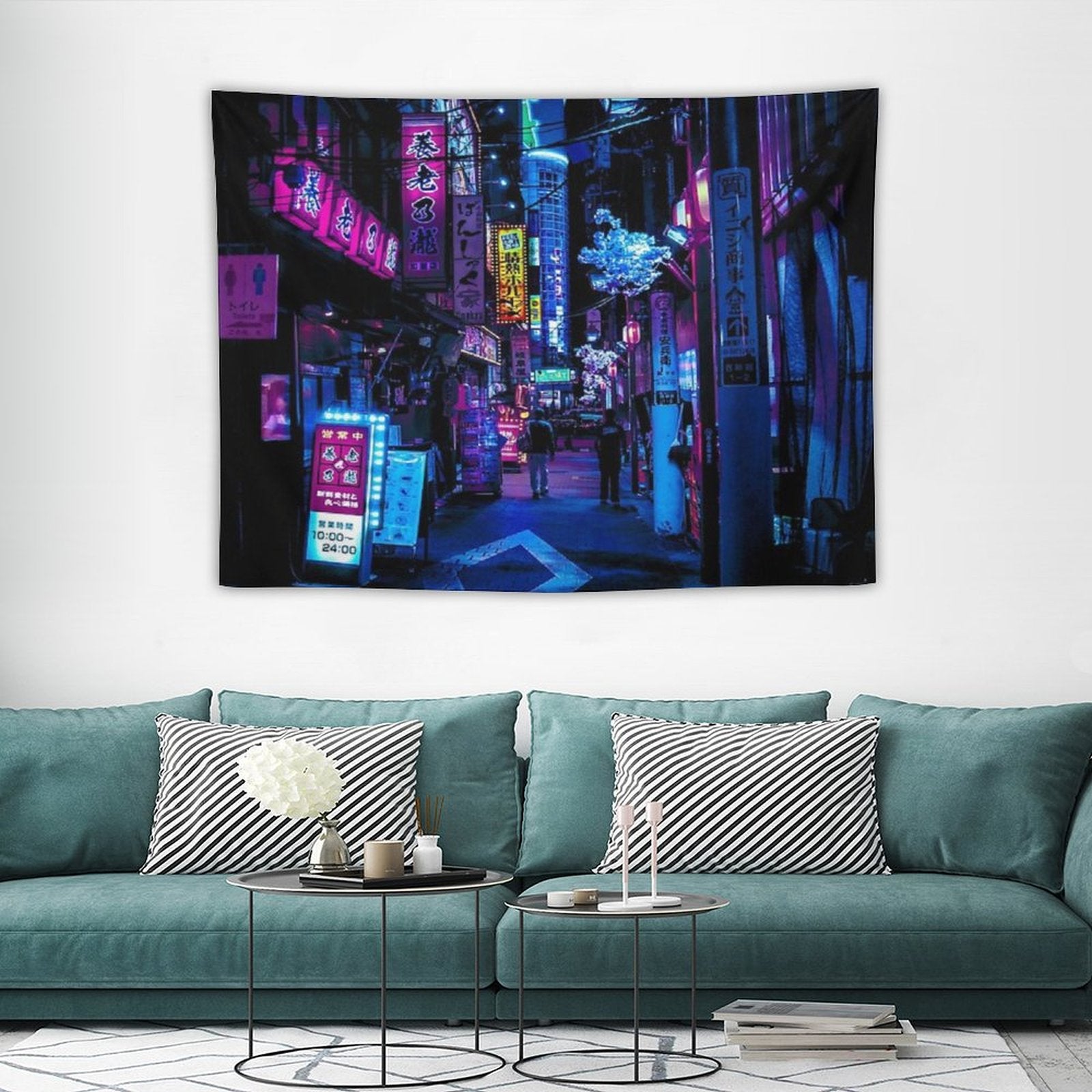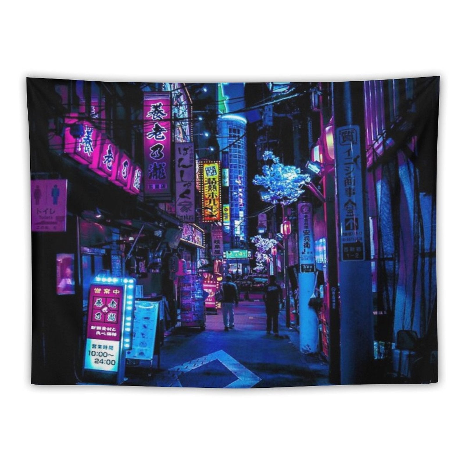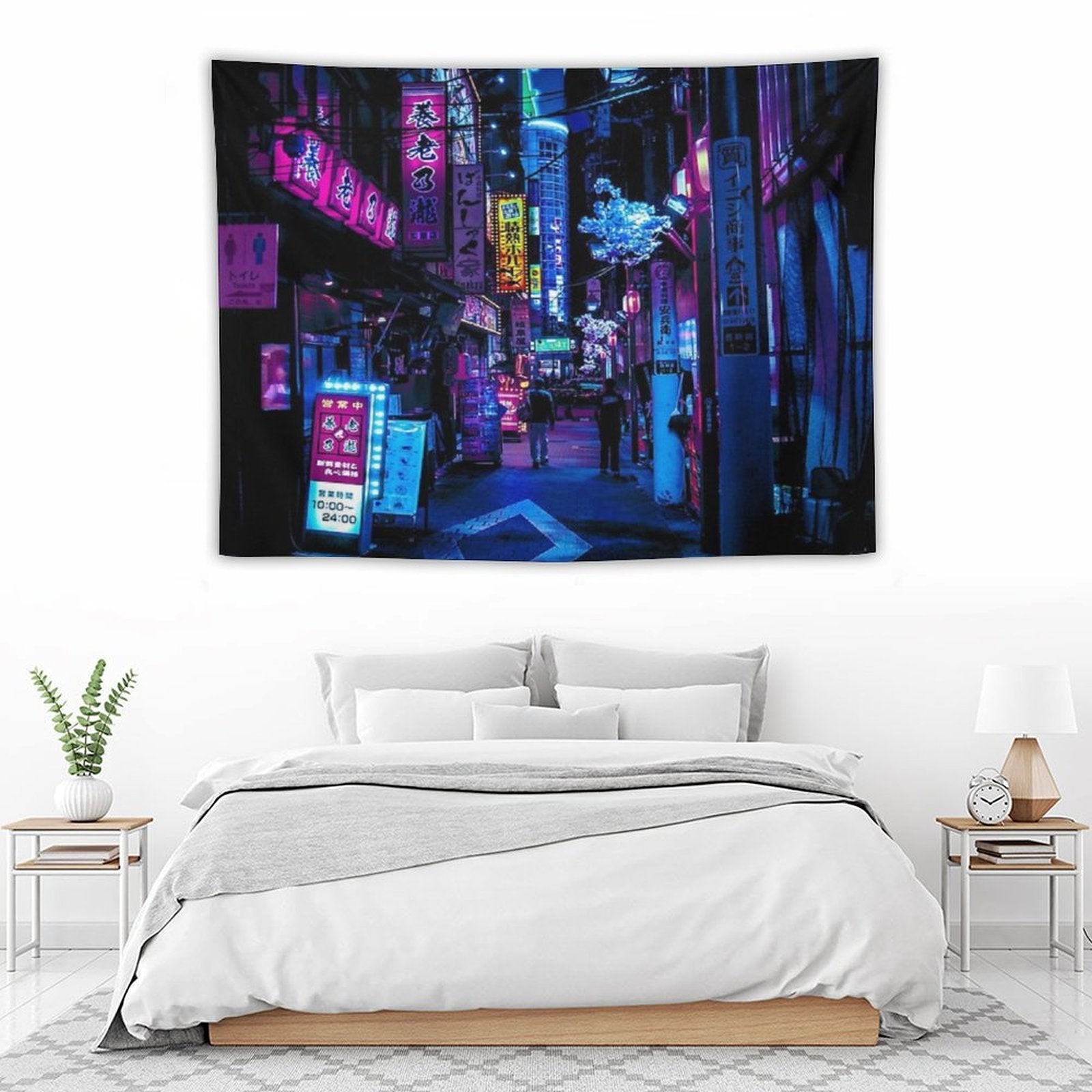 BionZax's Blue Tokyo Alleys Tapestry for Bedroom, College Dorm. Blue Tokyo Alleys Tapestry to decorate your bedroom, college dorm, living room, or kitchen wall, it is the best gift for funny, meme, aesthetic, trendy, simple, fashion, music, abstract, fantasy, modern tapestry for girls, men, boys, teen, women, kids.