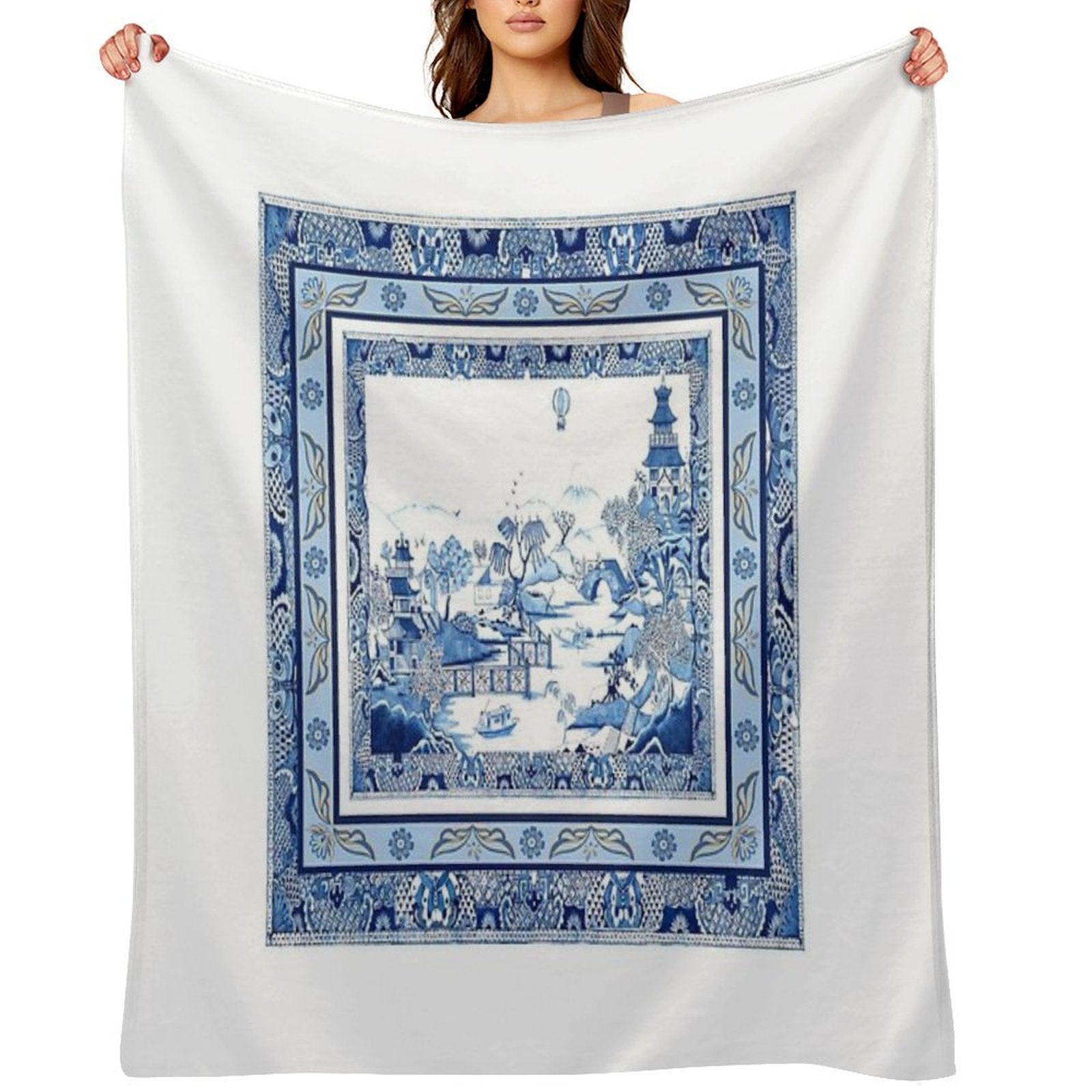 Blue Willow Double Frame Throw Blanket