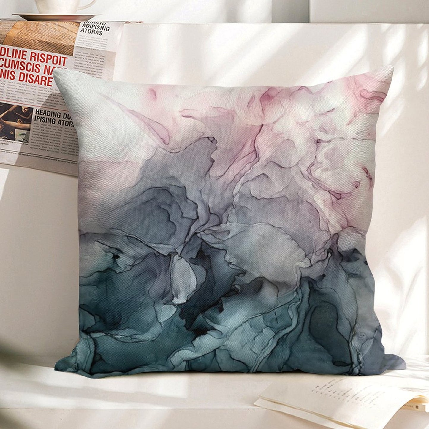 - Machine or hand washable (max 45°C). Avoid bleach and prolonged soaking to preserve the vibrant texture of your Blush And Payne's Grey Flowing Abstract Painting Luxury Pillow Cover.