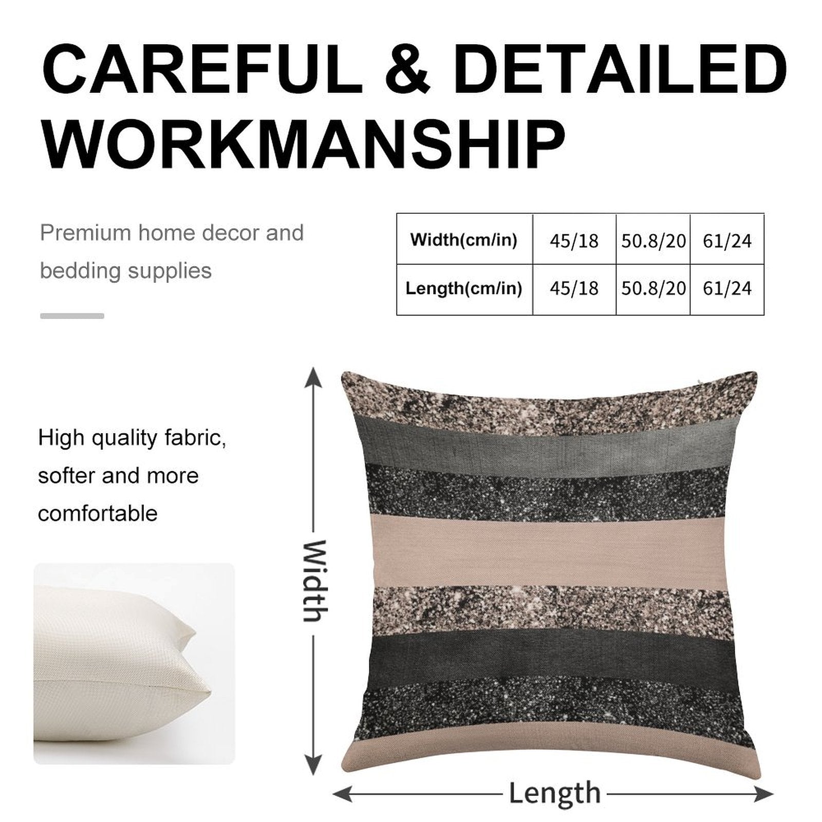 - Machine or hand washable (max 45°C). Avoid bleach and prolonged soaking to preserve the vibrant texture of your Blush Glam Stripes #2 (Photo of Glitter Only - Not Reflective) Luxury Pillow Cover.