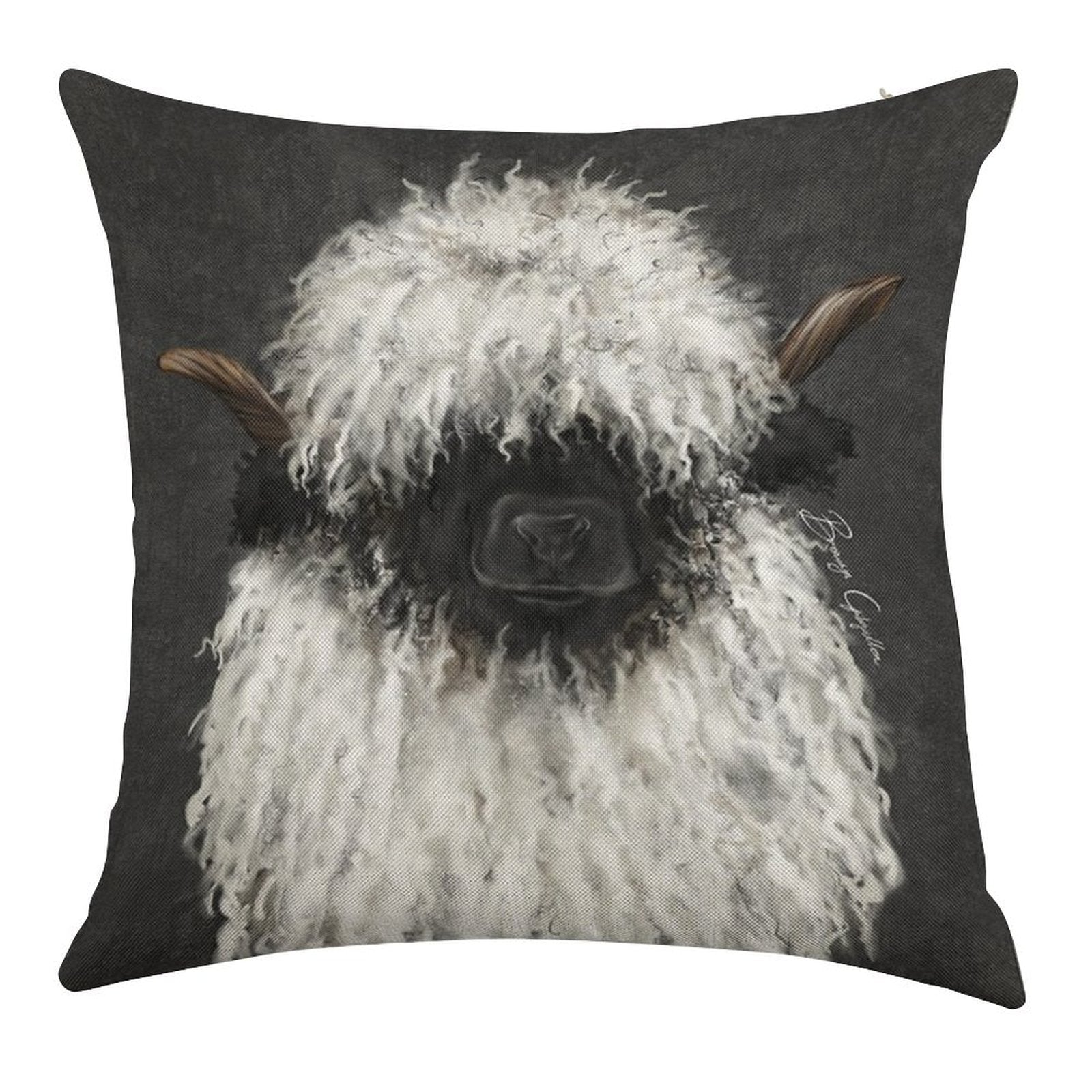Bo Sheep. Valais Blacknose Sheep. Linen Throw Pillow Cover